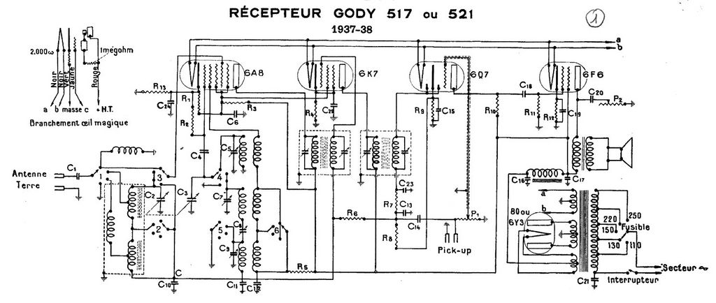 Je restaure actuellement un poste deTSF de marque GODY, modèle “Chinon”, et je remarque qu’il y a 2 doubles condensateurs de 2 x 8µf côte à côte dans cette radio ??? - alors que lorsque je regarde le schéma, je ne vois qu’un simple double condensateur de 2 x 8µf…