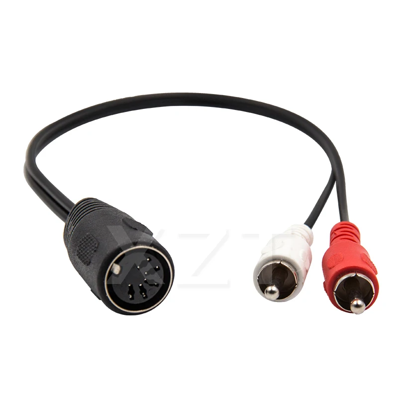Si tu as le schéma de l appareil ou du câble achète un câble RCA que tu coupe au millieu et une din femelle ça te coûtera moins cher que l adaptateur et tu le fait toi même