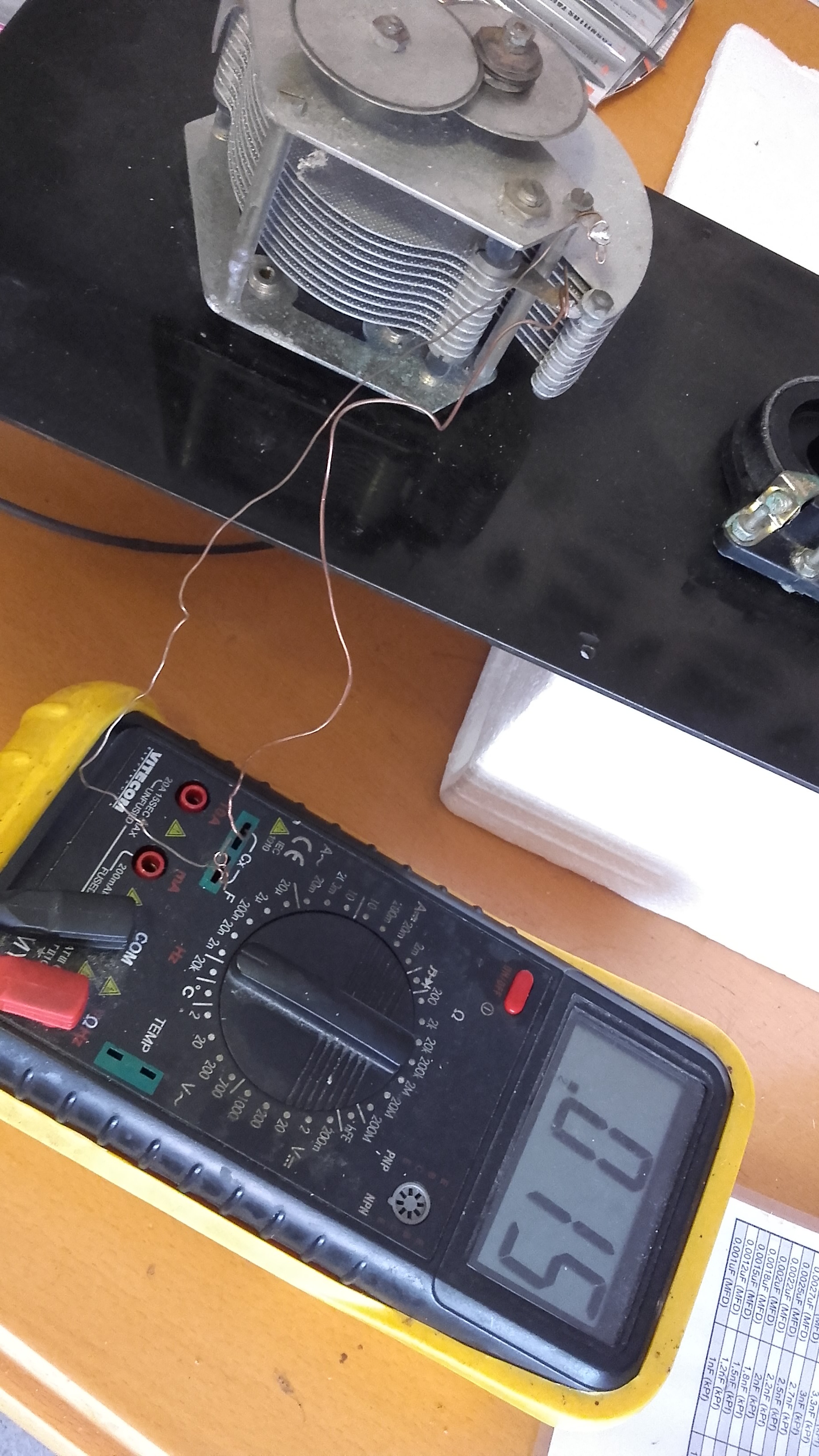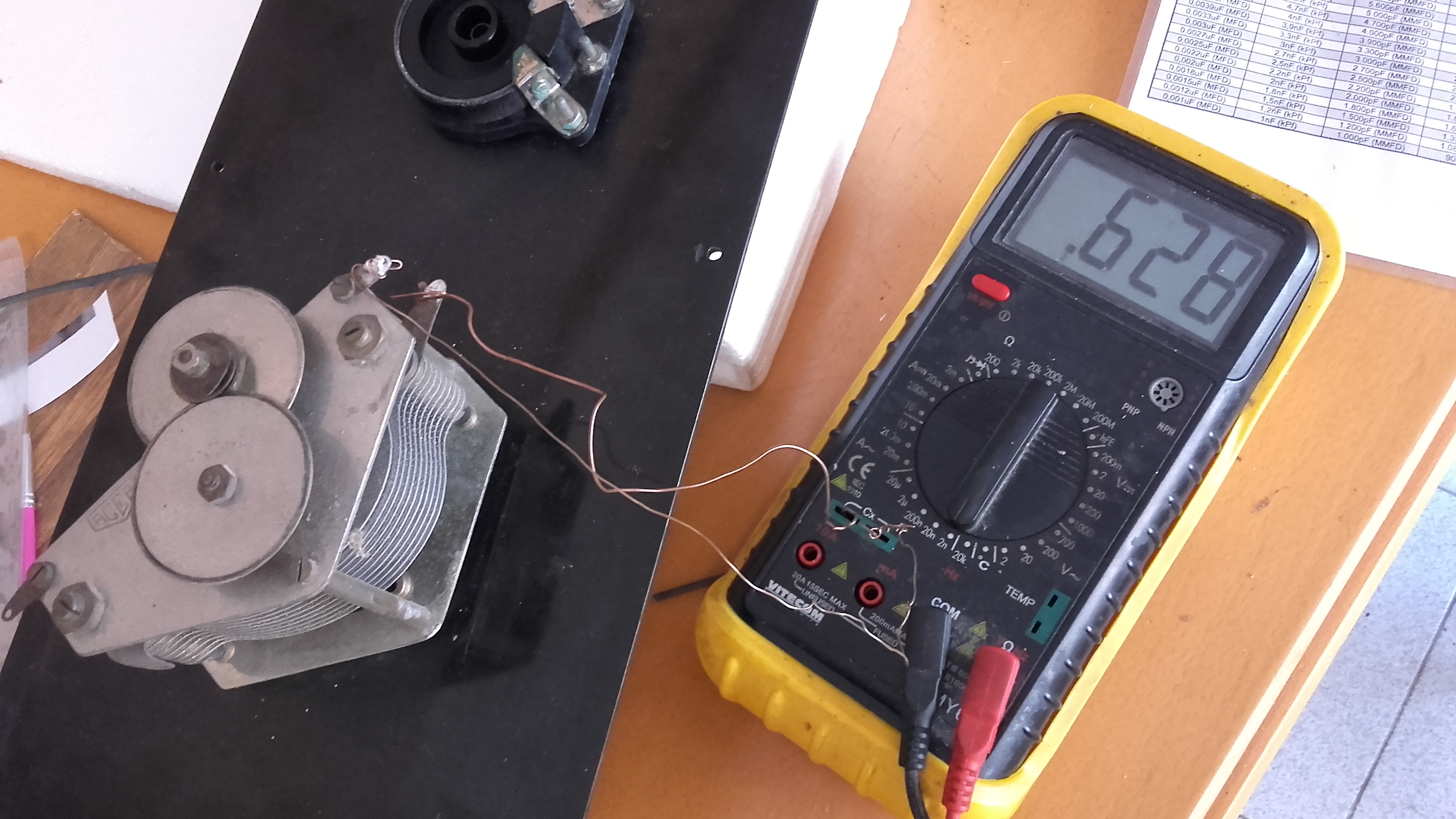 J’ai testé les condensateurs variables et ils sont en bon état. Les mesures sont à 15pF et 628pF.