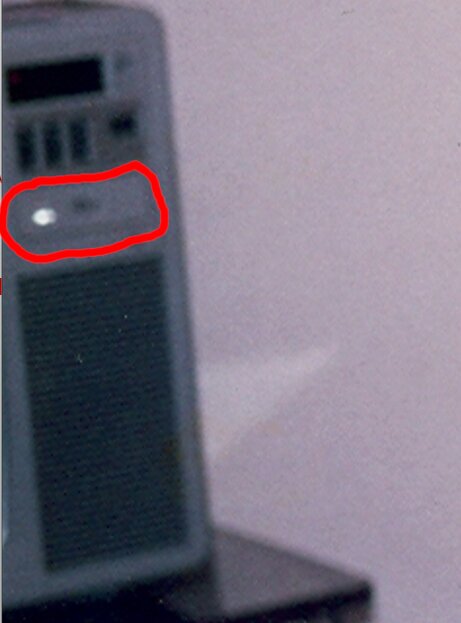 Bonsoir Jean Pierre, je ne pense pas que ce soit une led mais le reflet du flash sur un logo argenté