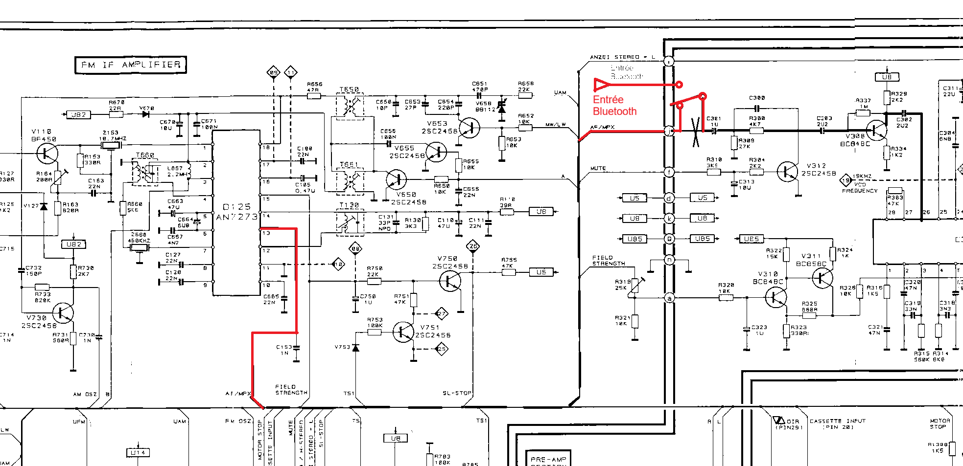 J’ai branché l’audio juste avant ce que je pense être le préamplificateur AN7273 (broche 5).