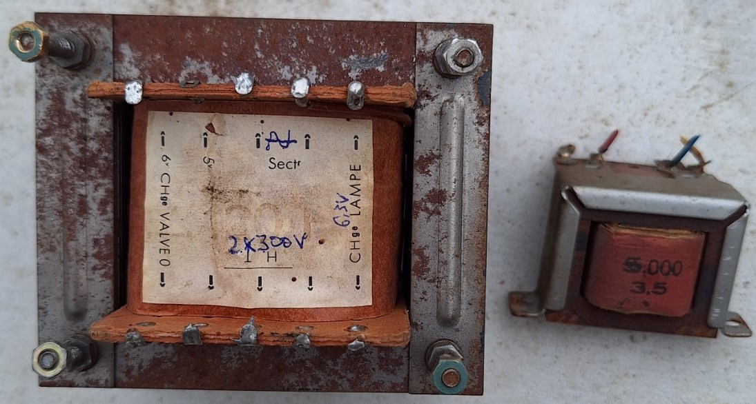 Avec tous les démontages que je suis en train de faire, j’ai ce qu’il faut comme T.A. 2 × 300 à 2 × 350 v et comme T.S. de Z = 5000 Ω pour EL84.