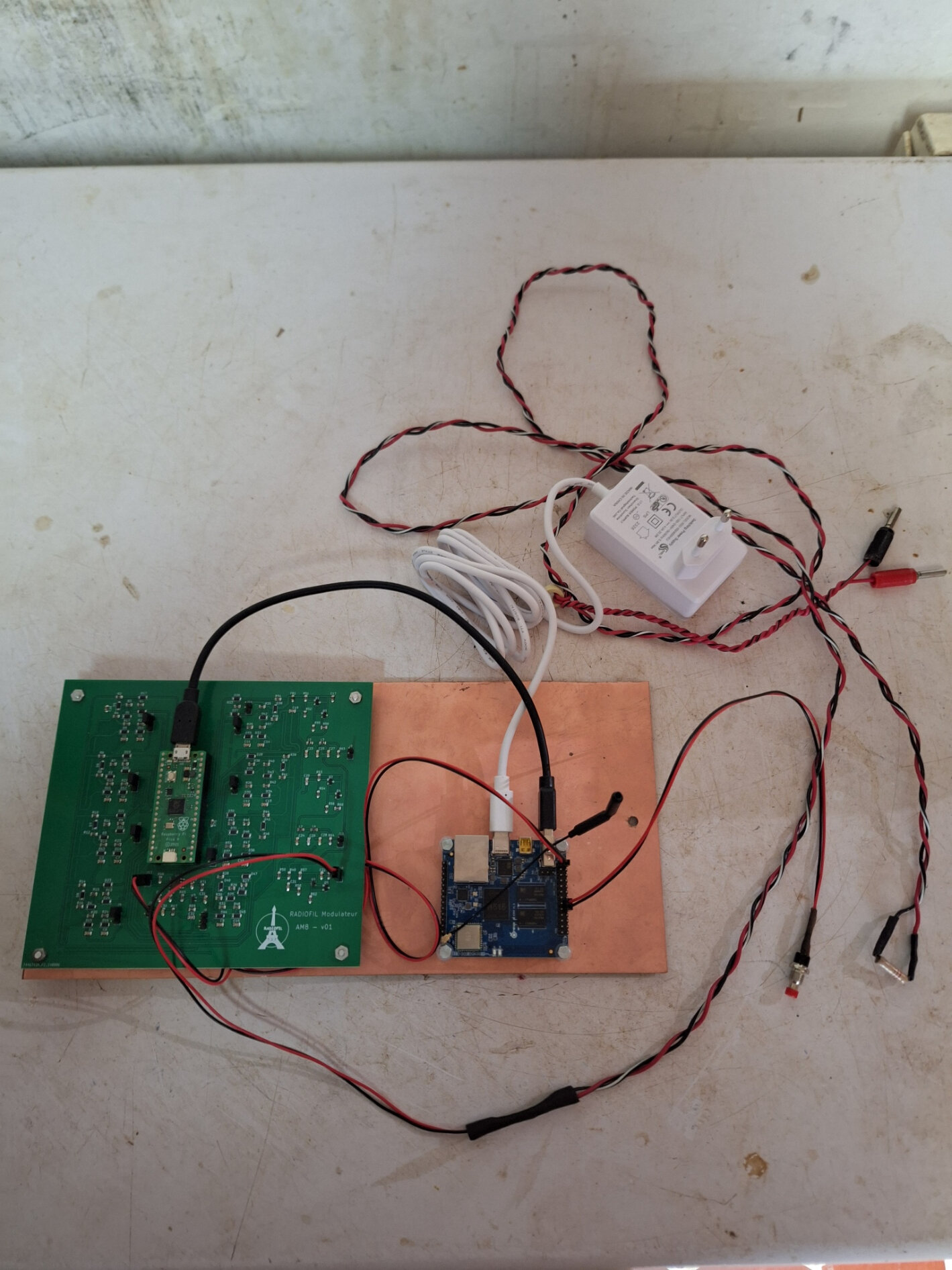 Lors de la mise sous tension, même si il y a un éventuel soucis avec la carte modulateur, ce module doit fonctionner seul : la petite Led rouge s’allume quelques secondes,
