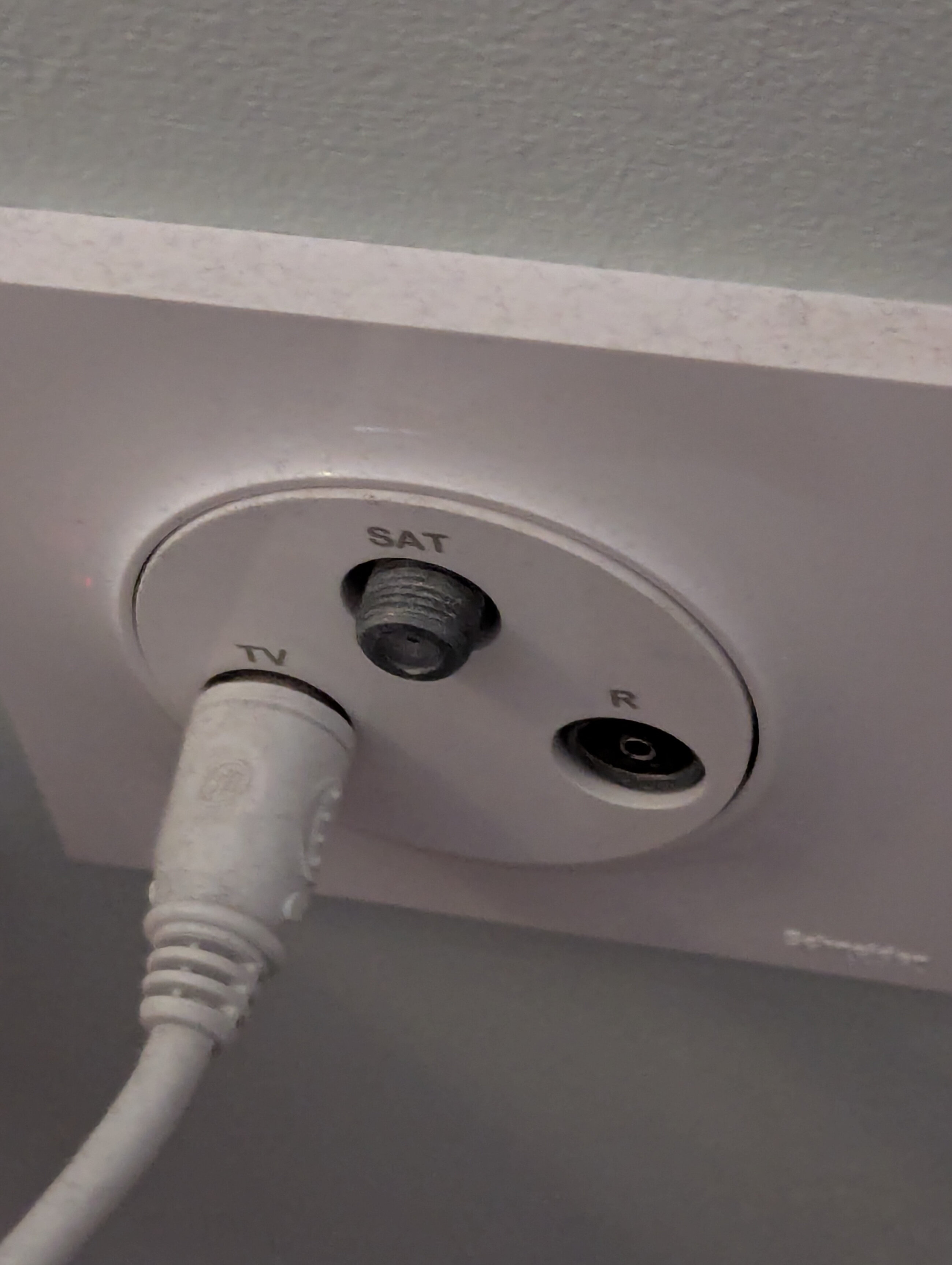 Là il y a au moins la télé en UHF (TNT) puisqu’un câble est raccordé sur la prise TV !