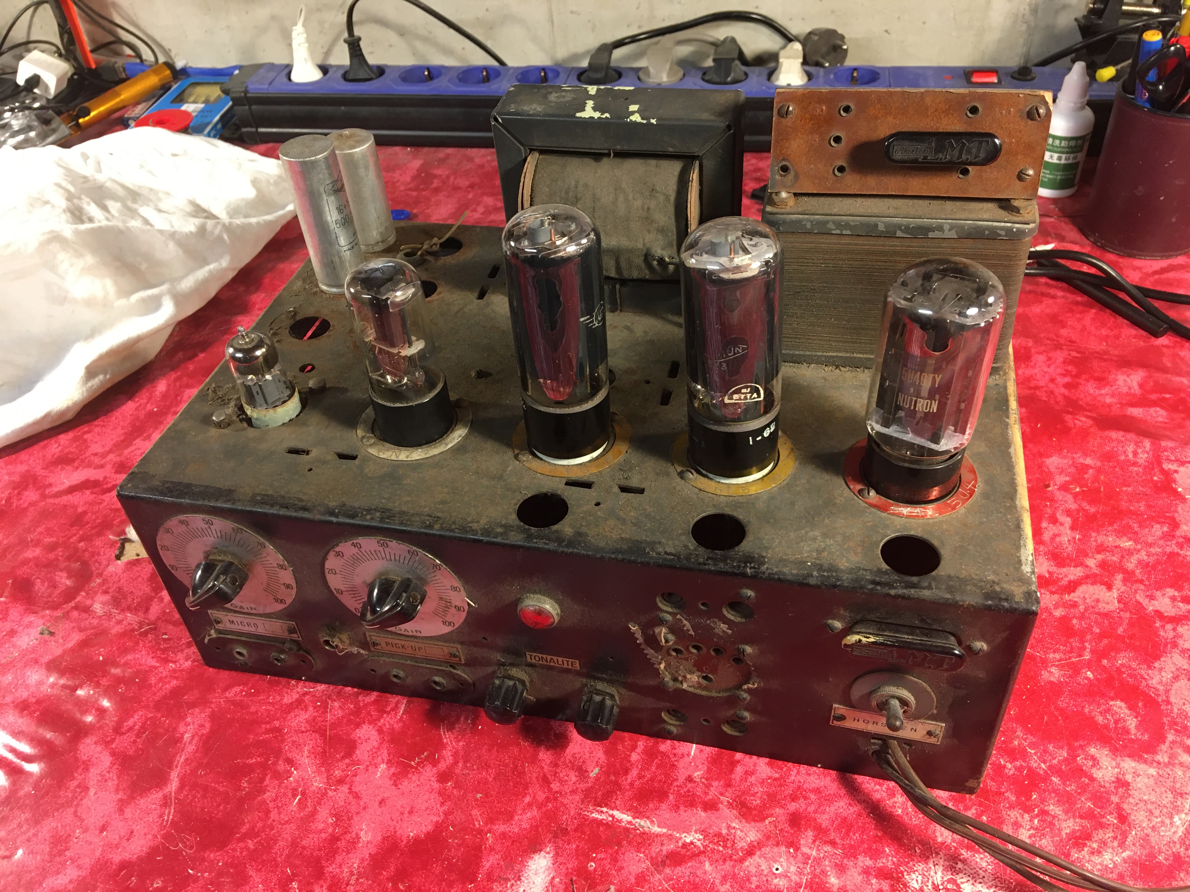 Donc,pour le schéma OK,je suis d'accord avec Bernard,je vais faire des recherches,pour la date par contre je ne suis pas d'accord,je veux bien glisser un peu de un an ou deux,mais jusqu'à preuve du contraire,c'est avant 1940,d'aprés les témoins,ou bien ils se sont trompés complétement,comme ils sont tous décédés depuis ,la vérif est impossible maintenant. Cet ampli a continué à tourner longtemps aprés la guerre pour cause de budget,jusque dans les années 60,ensuite il y a eu un ampli à transistors germanium de marque Jason (de 20W aussi) que j'ai connu,puis silicium, jusqu'aux enceintes amplifiées actuelles.