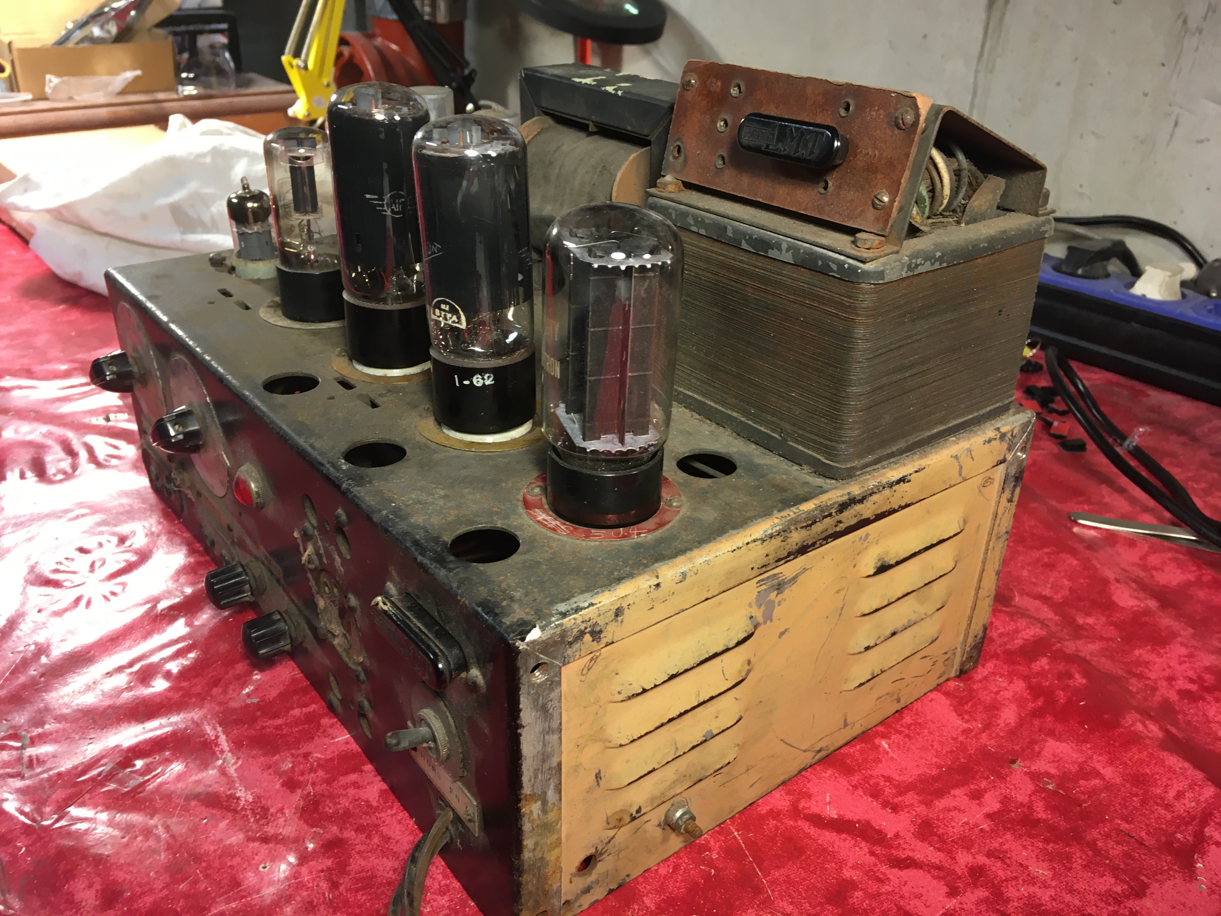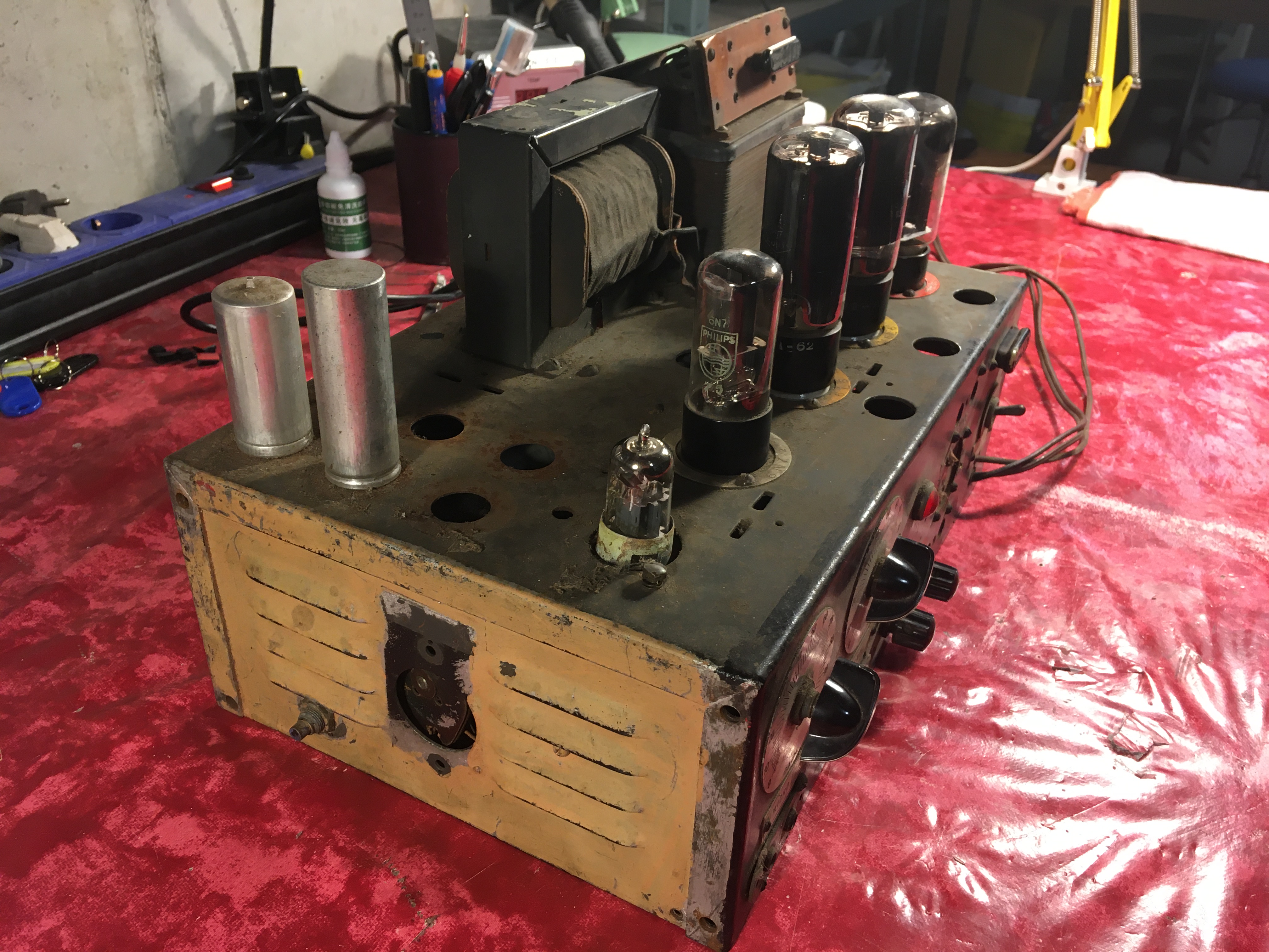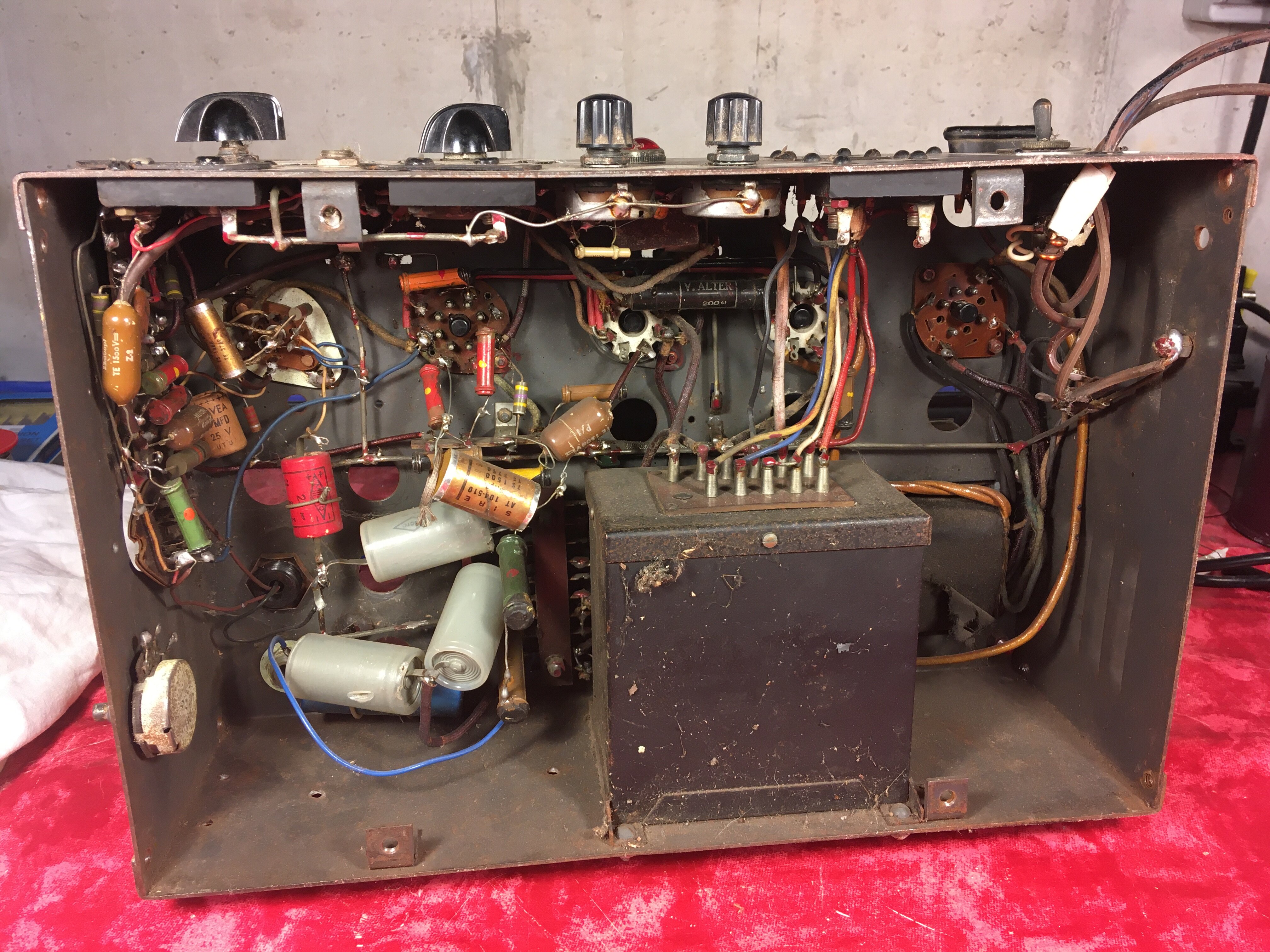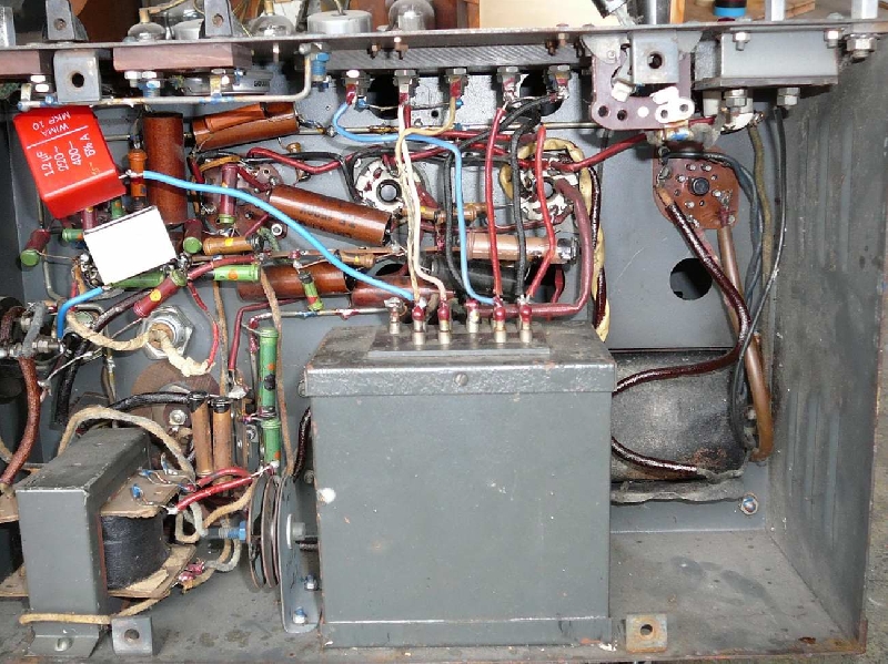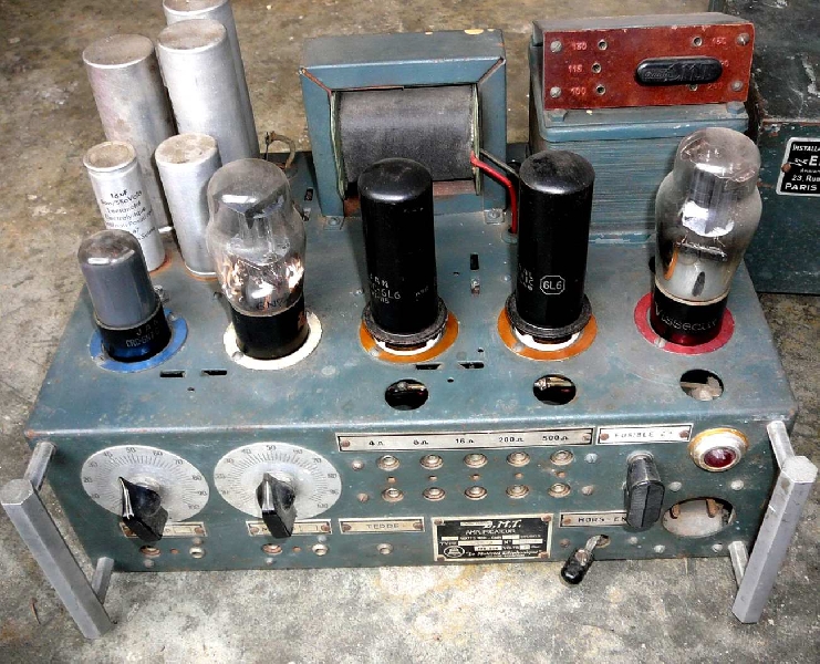 Bonjour,je n'ai pas revérifié en détail le câblage exact,puisqu'il faut que je retrouve le schéma que j'avais relevé à l'époque.Seule chose,pour moi il est d'avant guerre,car dans les années 80 à 90 ,il y avait encore des témoins oculaires vivants qui ont connu cet appareil en fonctionnement,et ce sont eux qui m'ont indiqué le début d'utilisation.Les 6L6,les 6N7 existaient déjà en 1935/1936,et il y avait plein d'amplis de 20,40,60w, avec des 6L6,il suffit de feuilleter les revues de radio de l'époque pour s'en convaincre.Ne pas oublier que dans les années 50 par obligation,et cause d'occupation,la France utilisait beaucoup de matériel,et de composants "avant guerre",par ce qu'elle était en pleine reconstruction à tout point de vue,ce qui explique les pubs des années 50,et l'on doit retrouver des pubs similaires avant guerre,comme il s'agit de matériel professionnel, qui n'était pas seule spécialité de LMT,les pubs sont parfois rares,voire inexistantes,il faut chercher alors du coté du constructeur.Quand au look,méfiance,en 1936/37 il y avait des appareils au look assez moderne,pour preuve le TELEFUNKEN 898WK de 1938 (il y a le tampon de date à l'intérieur) qui a un look extérieur années 50/60 avec son cadran horizontal moderne,seul l'examen des tubes employés révèle la vraie date (ECH11,EF13,EL12 etc..).