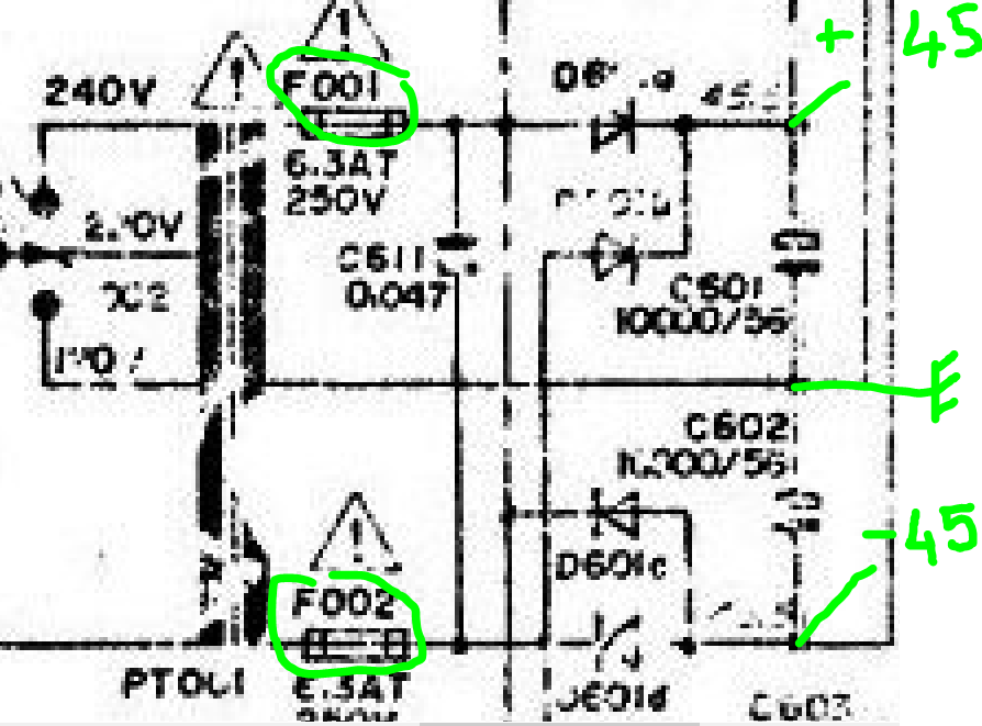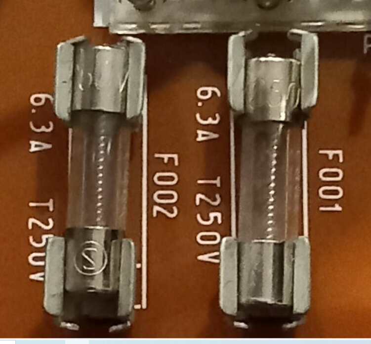 comme l 'on peut voir les fusible F001 er F002 ne sont pas au meme endroit mais ils ne sont pas grillés