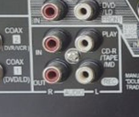 Vu sur le net, arrière de cet ampli, on peut connecter un magnétophone avec 2 paires de câble RCA comme il faut: