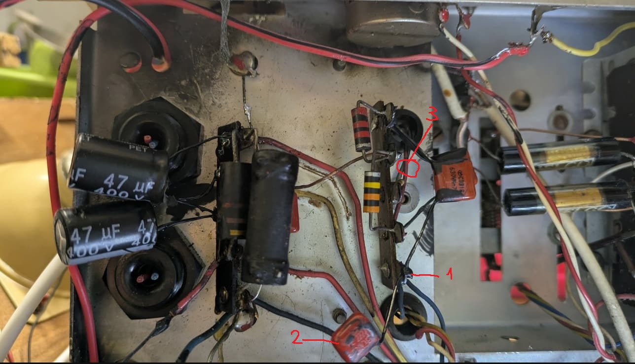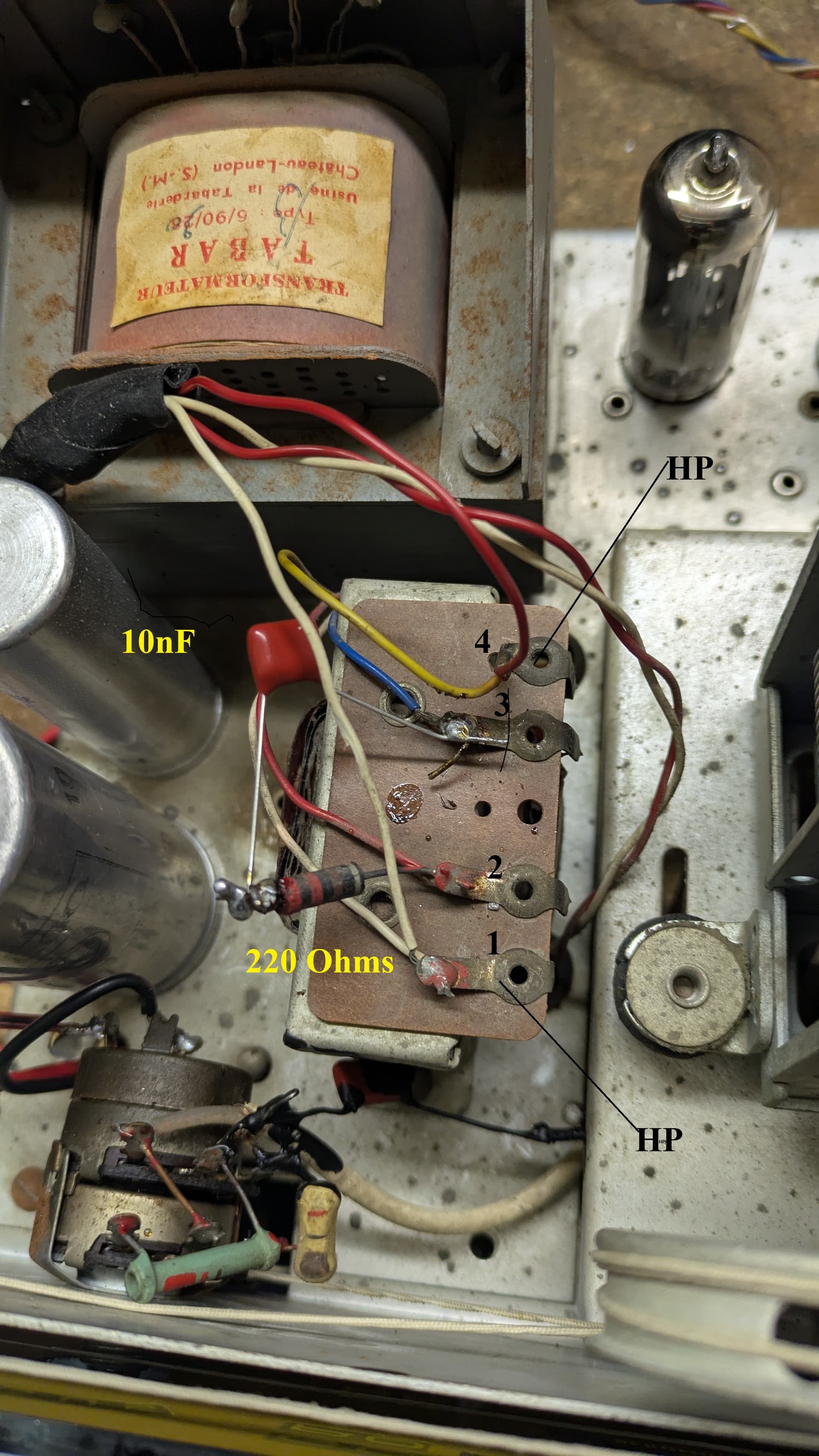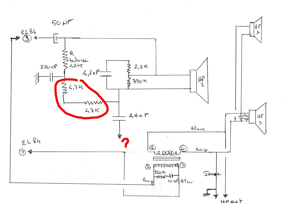 Pour le transfo BF il est déjà équipé au primaire (2-3) d’une résistance de 220 Ohms et d’une capa de 10nF