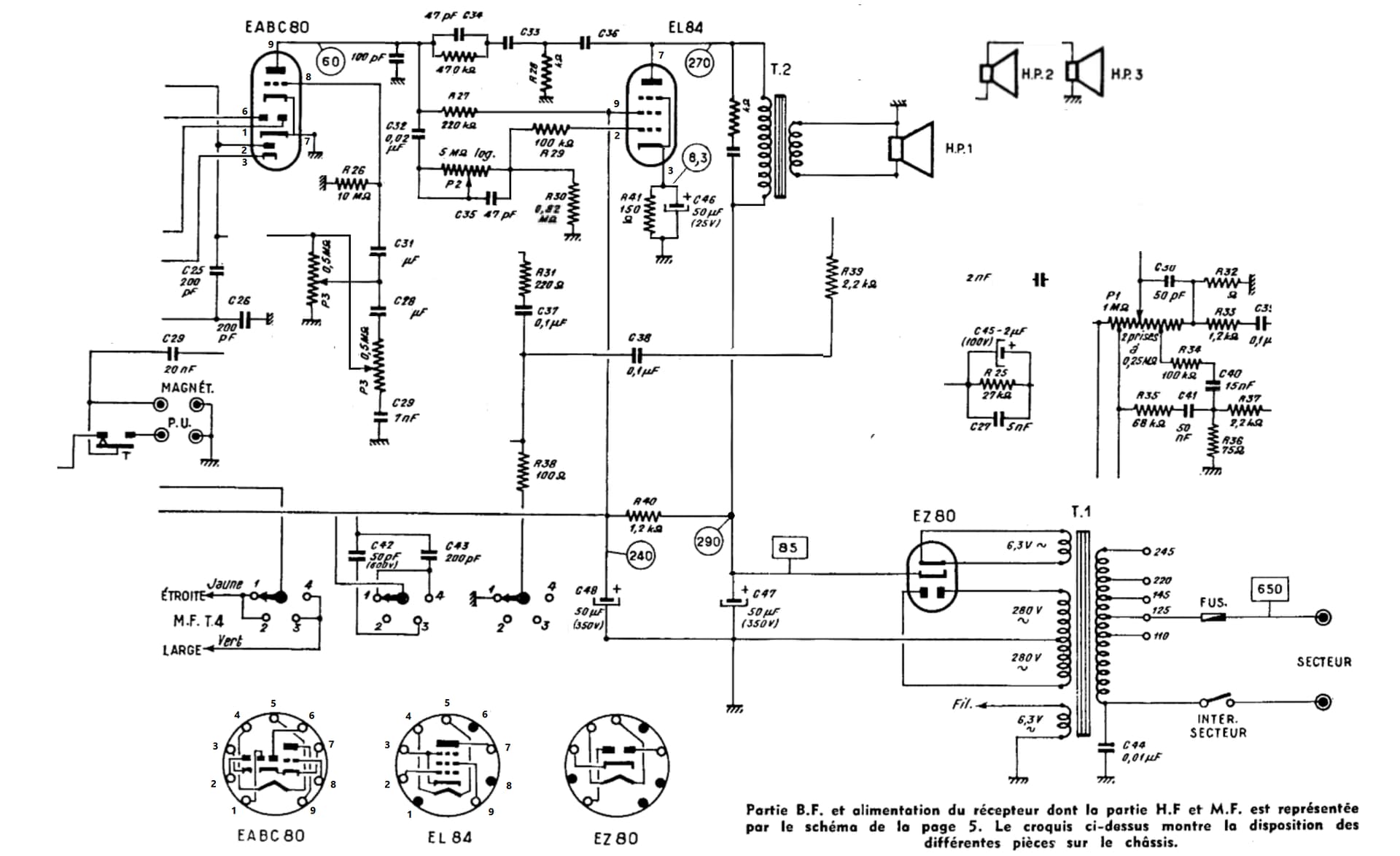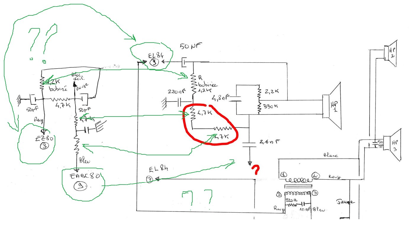 il y a l’alim du poste et ses filtrages ensuite les HT diverses tensions issues de cette alim sont distribuées dans les divers etages du poste