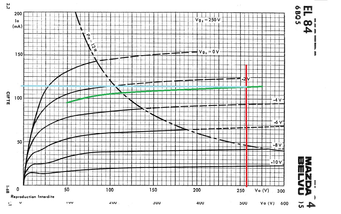 on devrait avoir un courant anode de 115mA ! droite bleue