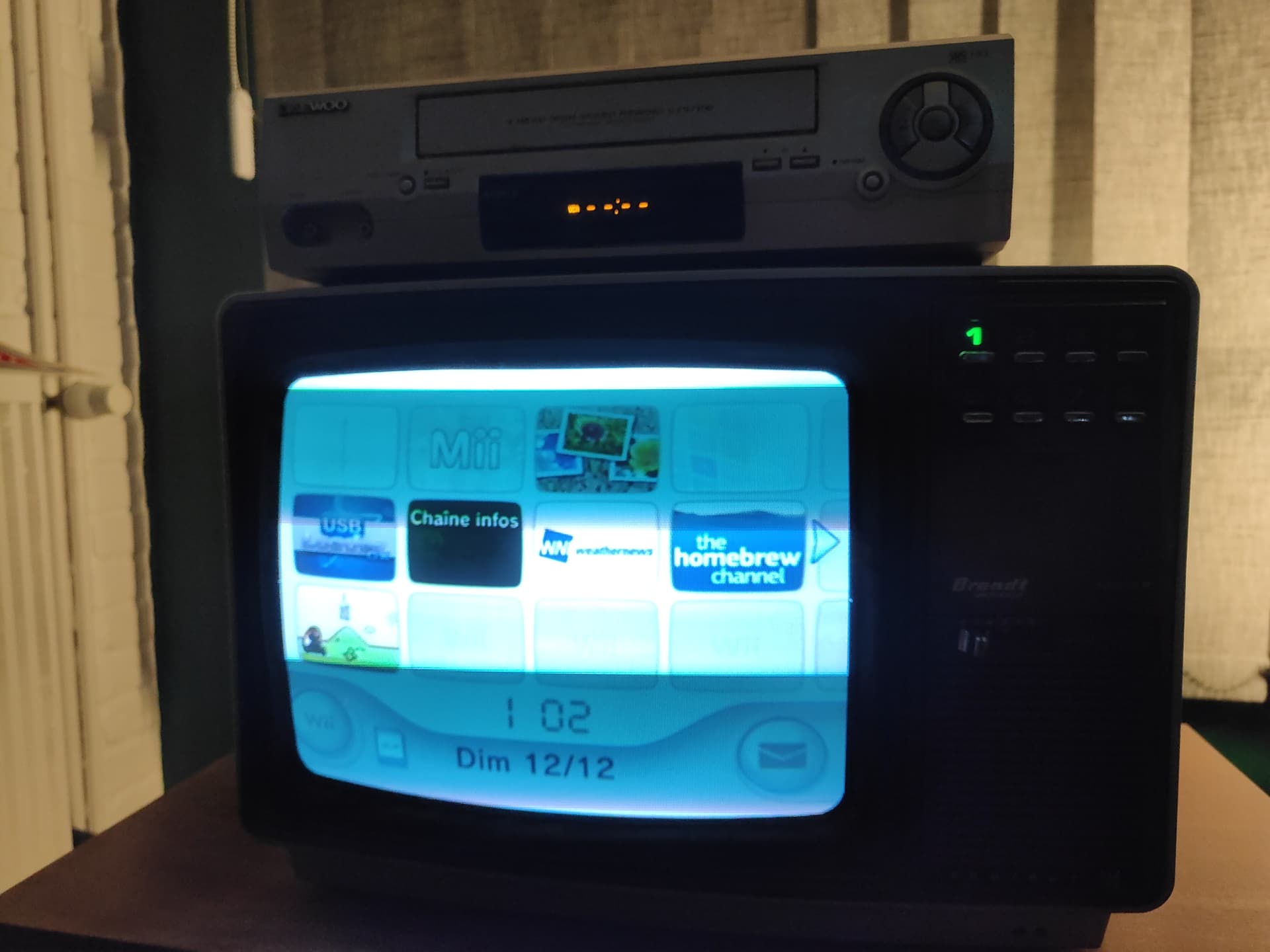 Est-ce que quand vous allumez le magnétoscope, le TV bascule automatiquement sur celui-ci sans avoir besoin de lire une cassette (écran bleu ou autre)? Si c’est le cas, essayez en branchant votre console sur la péritel bleue du magnétoscope et ensuite vous l’allumez et mettez la source sur AV2.
