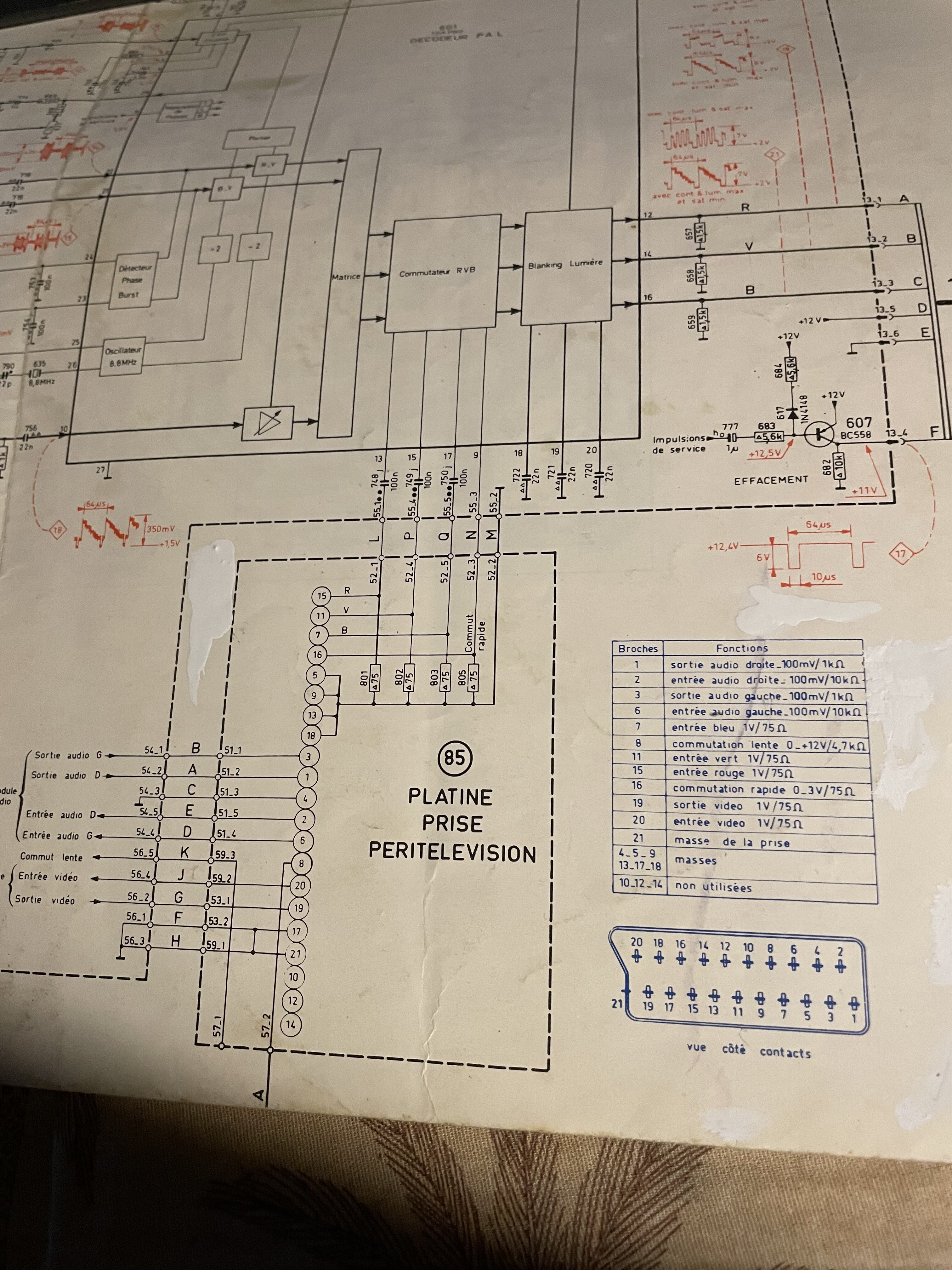 J’ai trouvé un ancien schéma peritel châssis tvc12 Philips du début des années 80, le seul qu’il me reste.