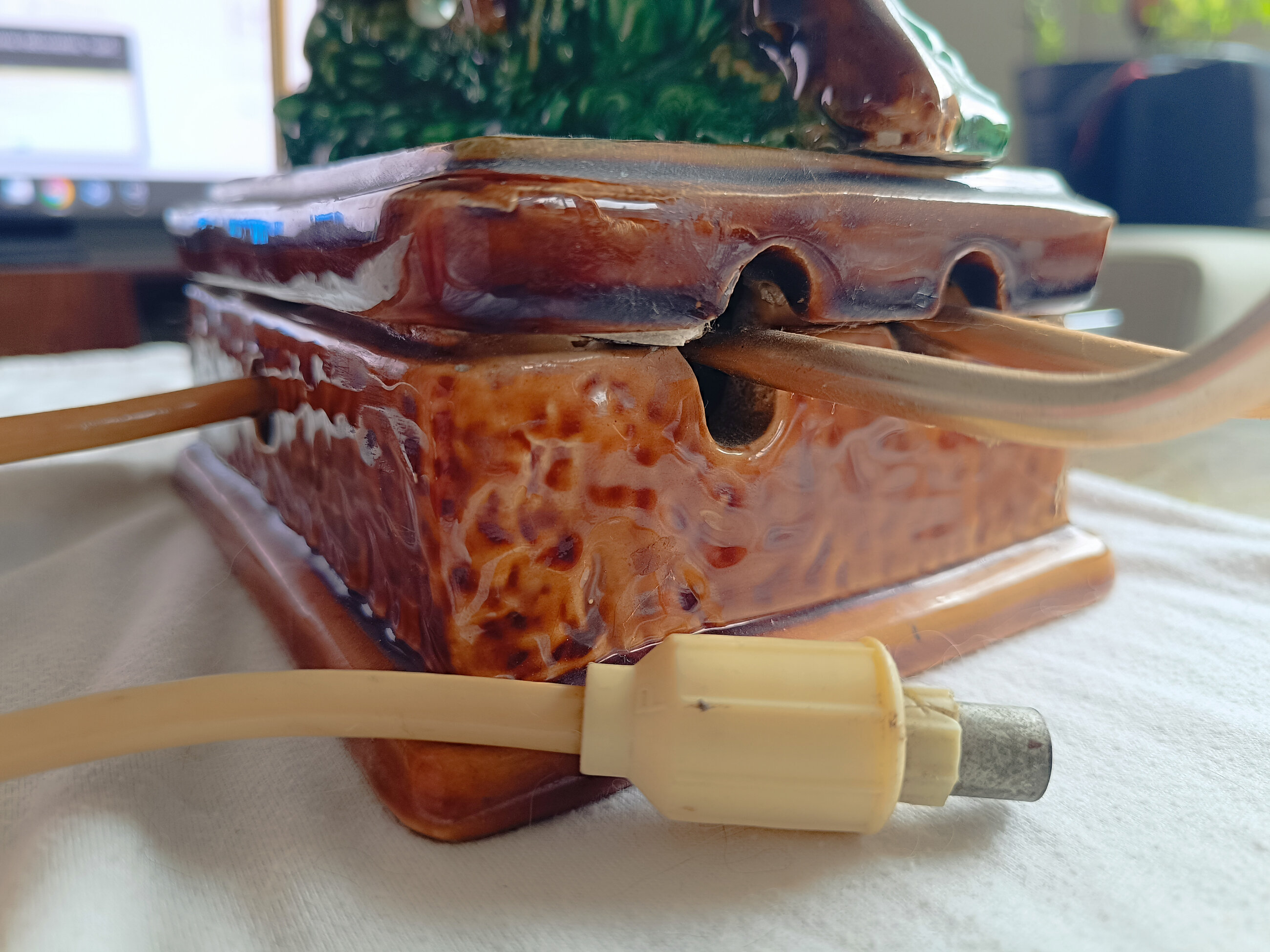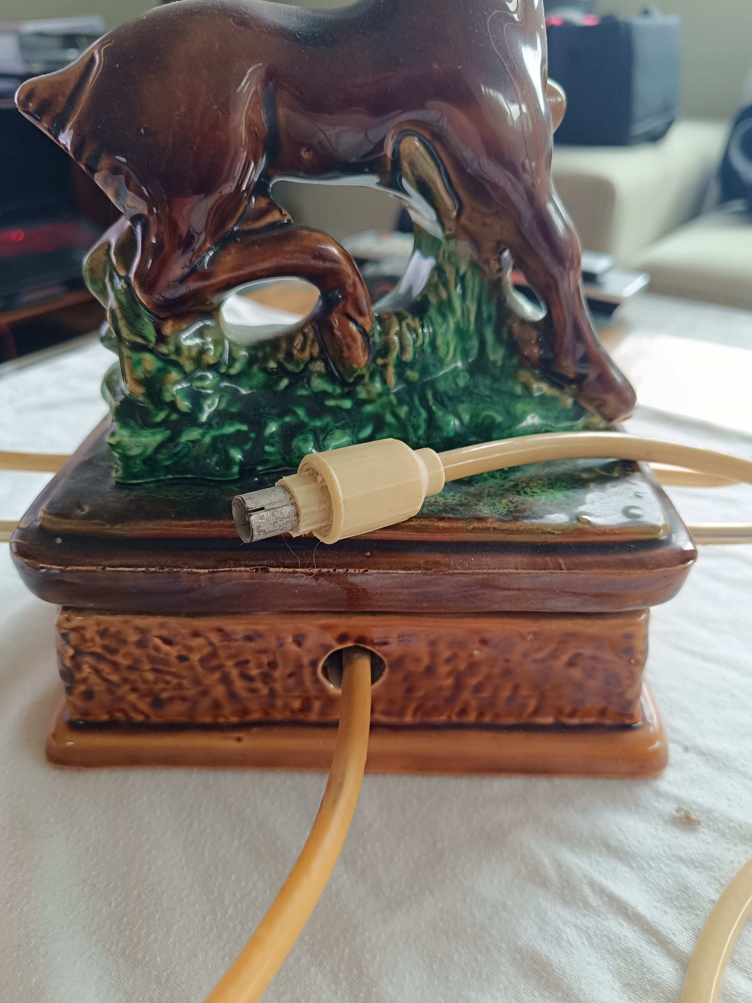 Jamais vu ce type d’antenne sur ce type de socle très particulier qui semble être de la céramique. Peut-être une production artisanale.