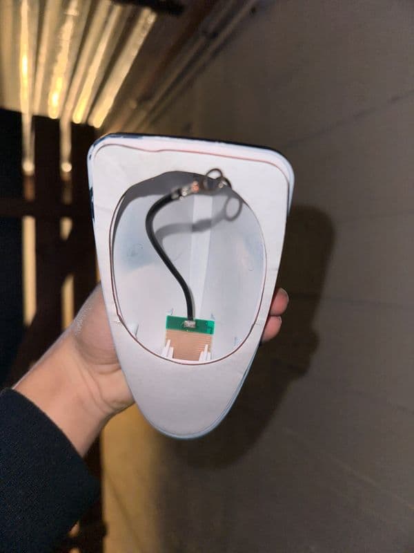 Le montage se faisait rapidement sans perçage, il suffisait de glisser les 2 grips du boîtier sous le joint pare-brise et deux petits auto-collants contre le pare-brise, la masse sur la fixation du rétroviseur. Ensuite de faire courir le câble antenne et d’alimentation derrière le joint et cela faisait un montage propre et discret