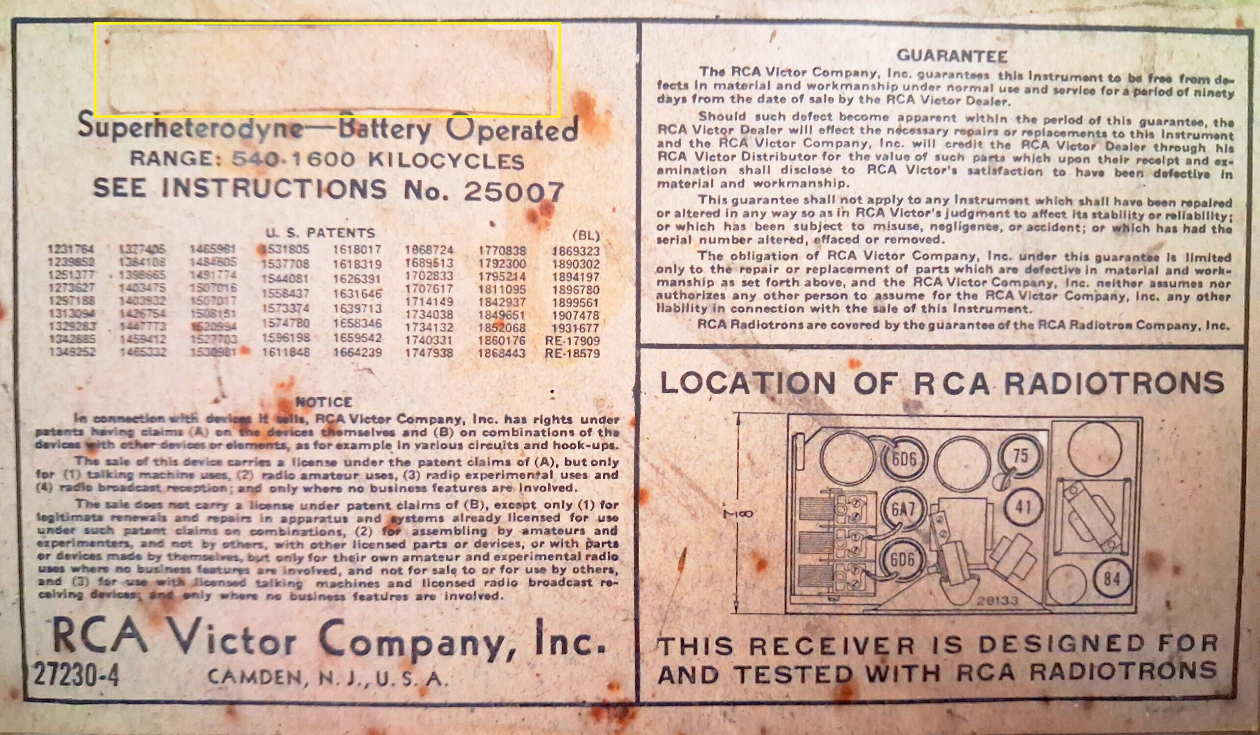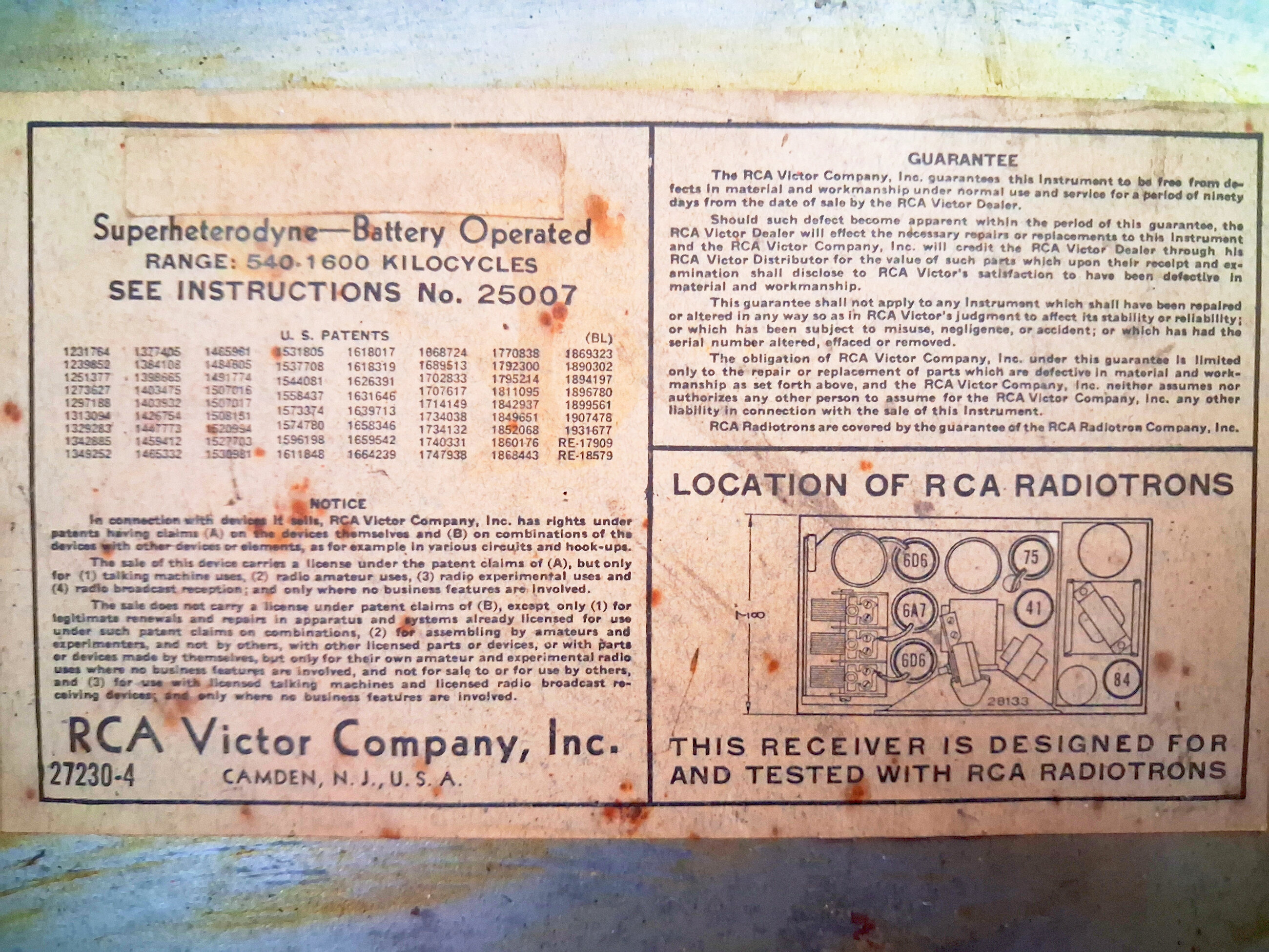 Avec d’autres modèles, on le retrouve aussi sur le RCA Victor Service notes de 1934.