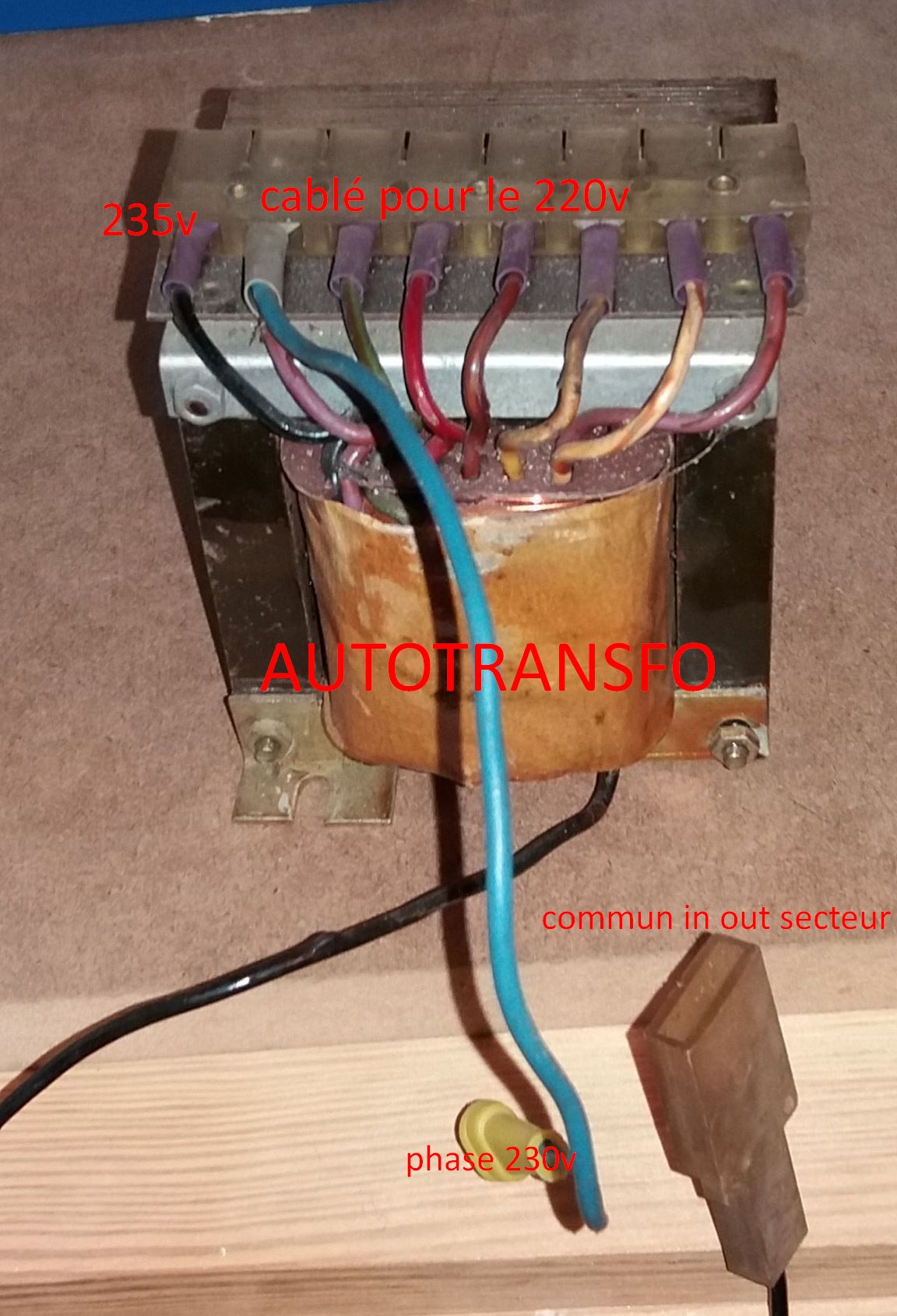 un autre autotransfo avec plaque identique IN-OUT, il y avait bien une vieille étiquette mis par l’utilisateur indiquant « appareil », mais çà n’a pas dimportance ?