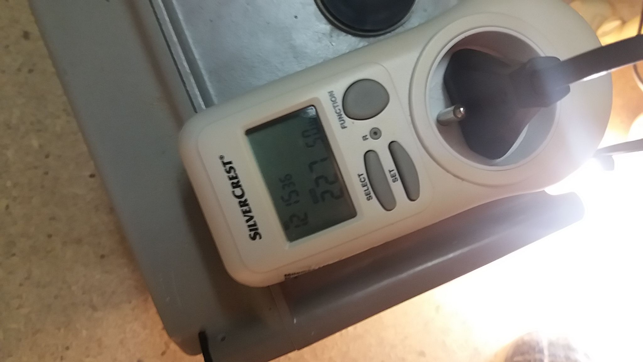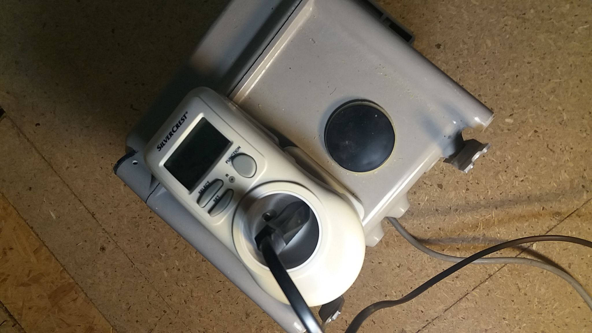j’ai aussi un boitier electrique qui doit etre 2 tfos tete beche entree cordon secteur, sortie prise secteur avec terre, pas de continuité entree sortie meme sur la terre, c’est un truc fait maison, 230 vers 230, puissance inconnue, impossible a ouvrir, je nai pas la clé triangulaire adéquate : voir photo