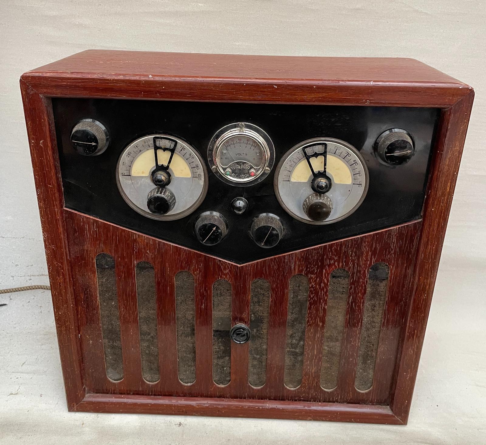 C’est certainement un récepteur de radio français, je pense un superhétérodyne avec bigrille, de petite marque.