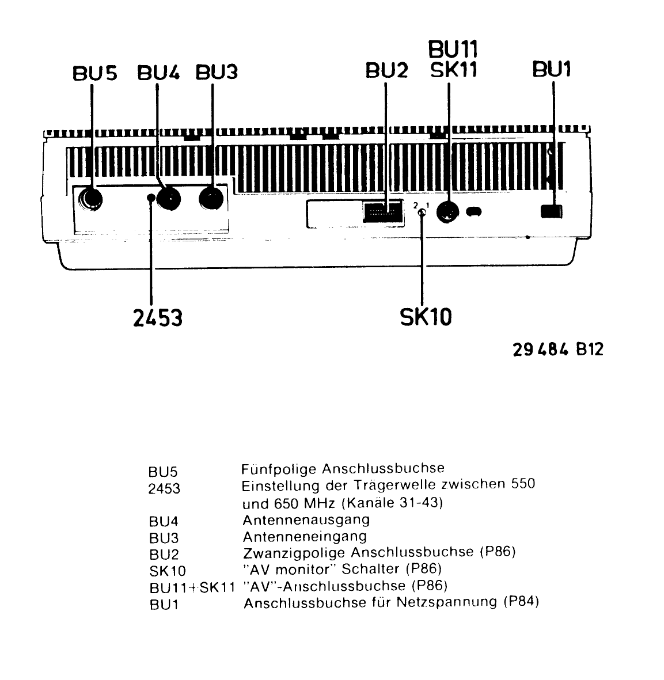 Le magnétoscope envoie un signal sur des canaux UHF compris entre 31 et 43 d’après le manuel de service, il y a parfois sur les magnétoscopes un interrupteur pour forcer l’affichage d’une mire (2 barres verticales sur un fond noir), pour faciliter la recherche par le TV du canal où le magnétoscope envoie un signal.