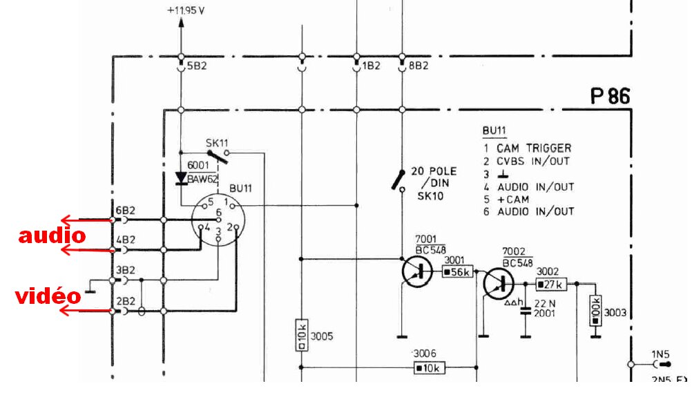 au pire tu peux te fabriquer le cable, tu achètes un connecteur DIN 6 broches, et tu soudes les cables RCA (un pour la vidéo, un pour l’audio), l’affectation pour les pins pour ce connecteur doit être présent dans le manuel de service.