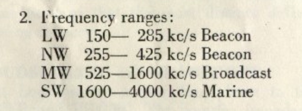 Entre 1600 et 4000 kHz à part le soir entre 3950 et 400 kHz, bande des 75 mètres (radiodiffusion en AM) et de 3500 à 3800 kHz (bande radioamateur des 80 mètres) il n’y a plus grand chose à écouter avec une antenne simple. De plus comme les amateurs sont en BLU, comme d’ailleurs les stations maritimes encore en activité, et que ce récepteur est seulement équipé d’un BFO c’est pas ce qui se fait de mieux pour recevoir la BLU