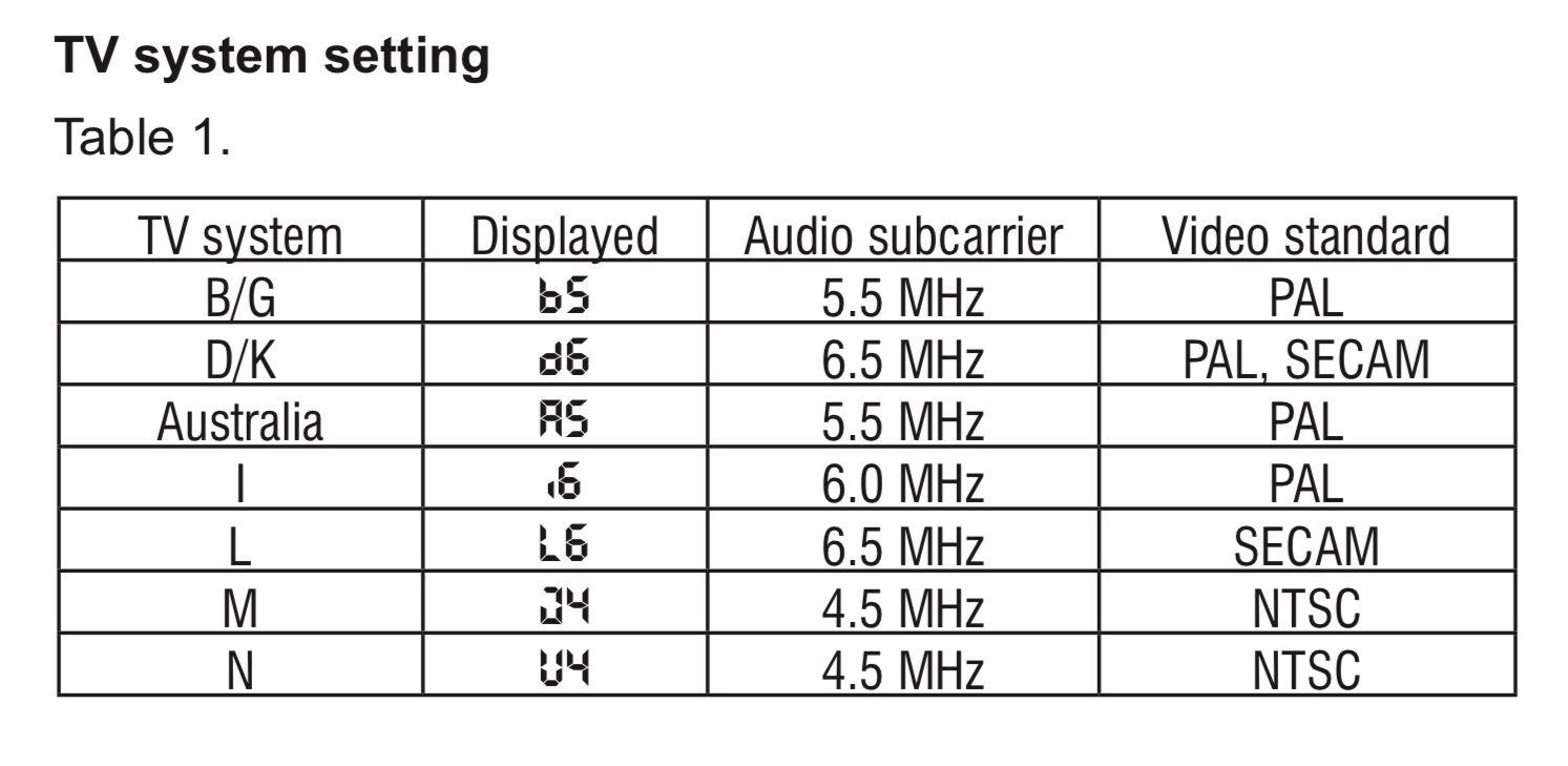 Il faut également fournir au modulateur un signal video analogique complet encodé au système couleur SECAM, si vous mettez un signal video avec la couleur encodée en PAL l’image apparaîtra en noir-blanc sur votre téléviseur conçu pour le système SECAM.