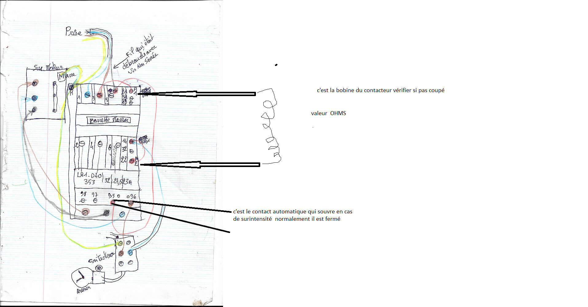 - déconnecter tous les fils en partie supérieure du contacteur en repérant bien ou ils vont (important)