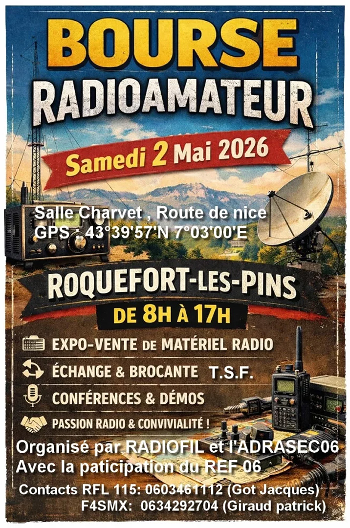 La 21e bourse de Roquefort-le-Pins rassemblera Radios-Amateurs et collectionneurs le samedi 2 mai 2026 .