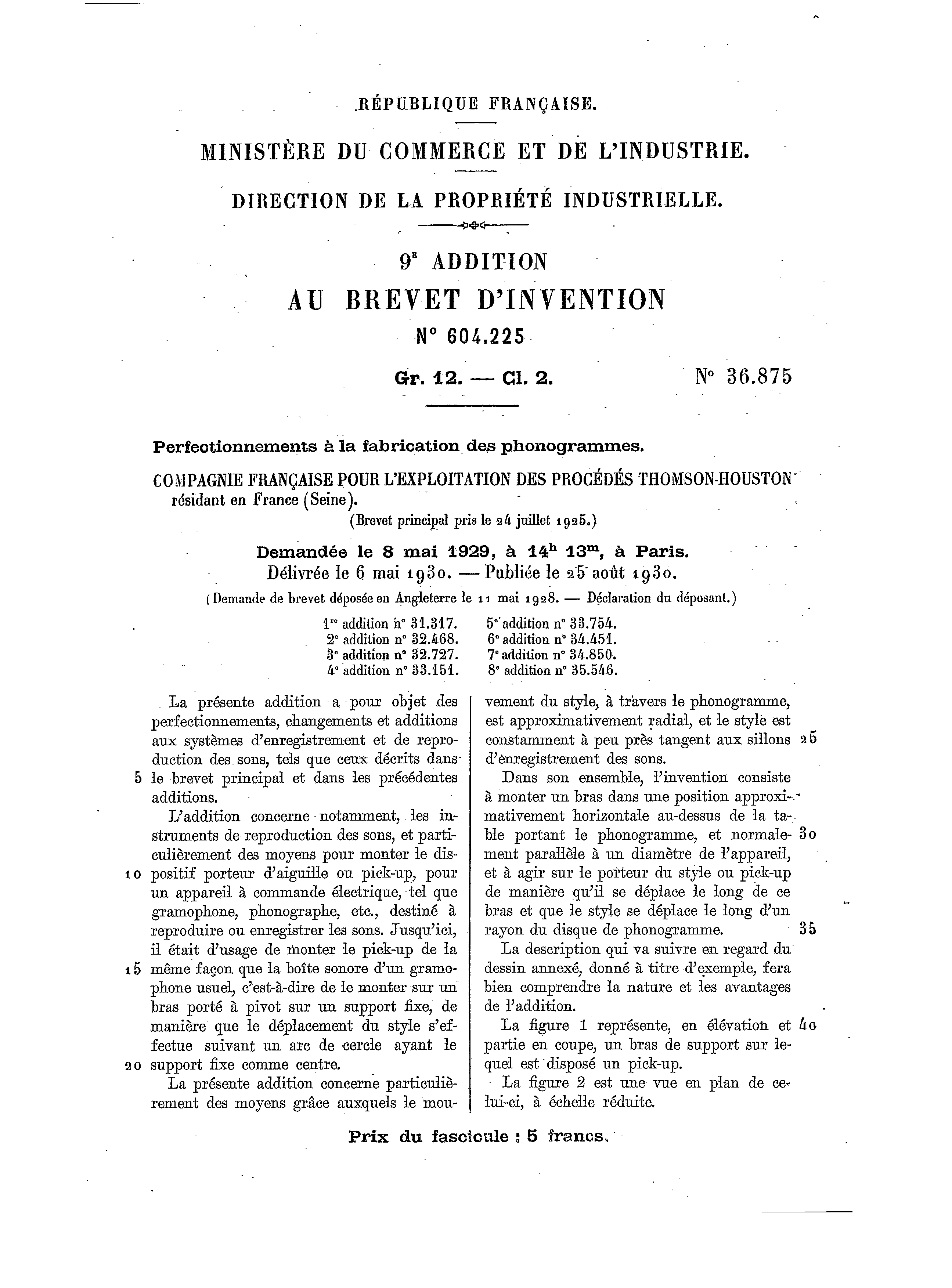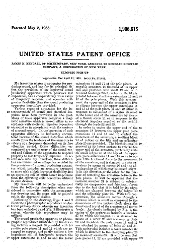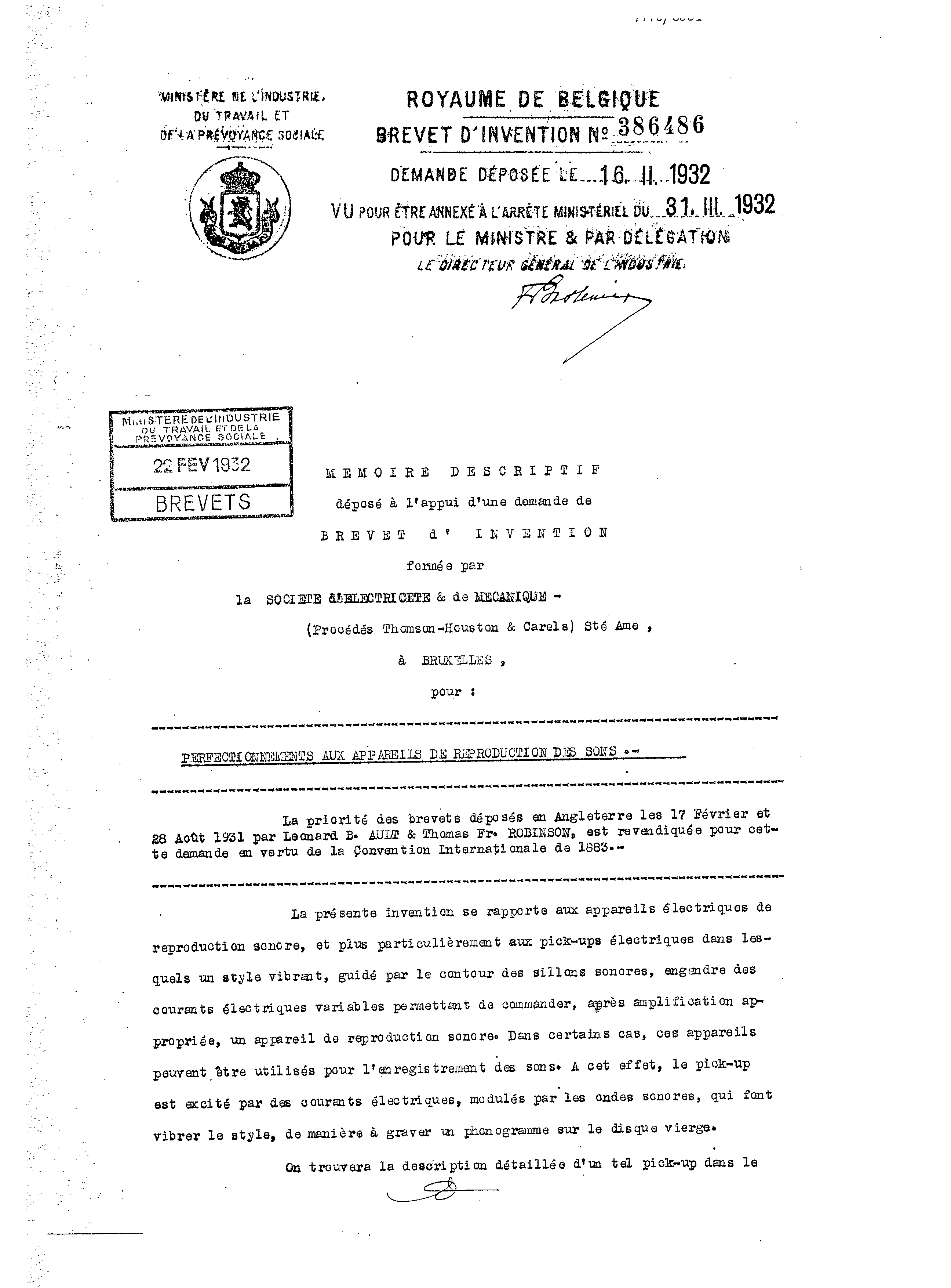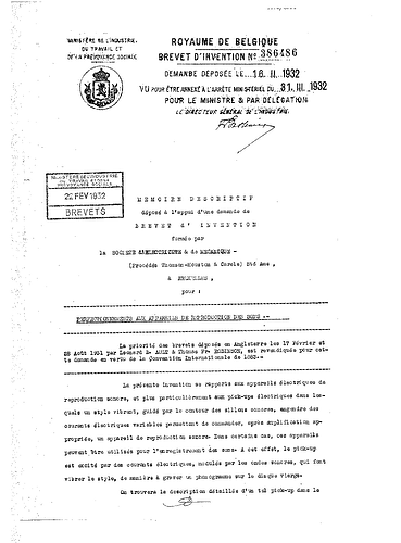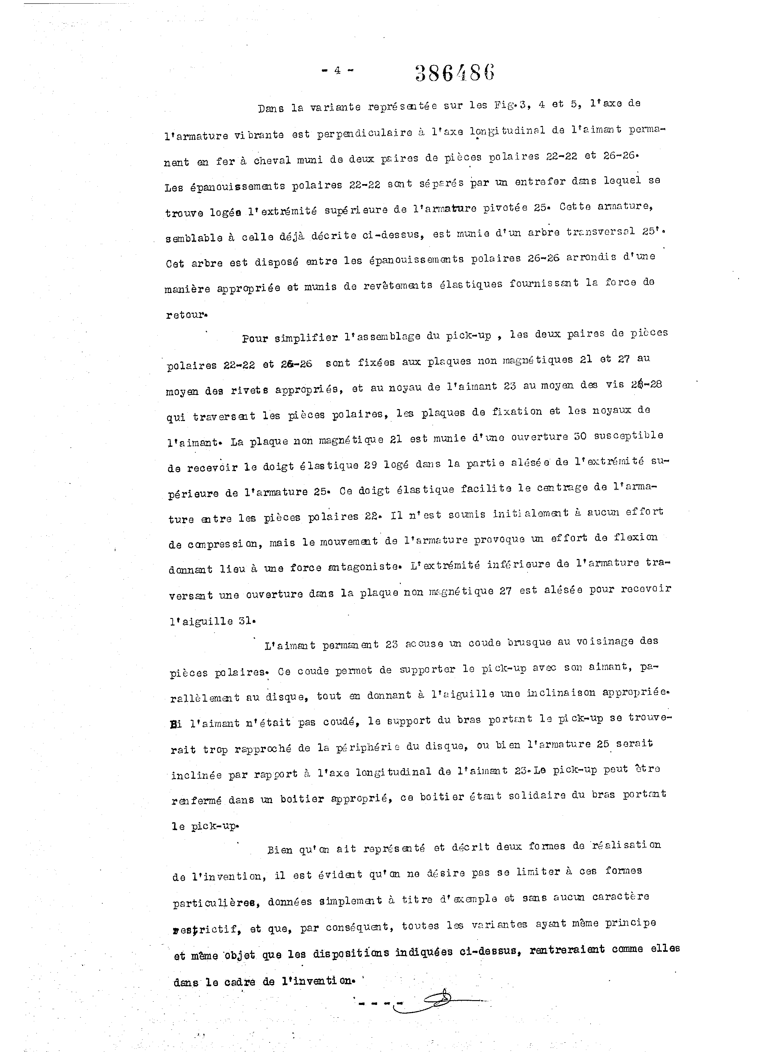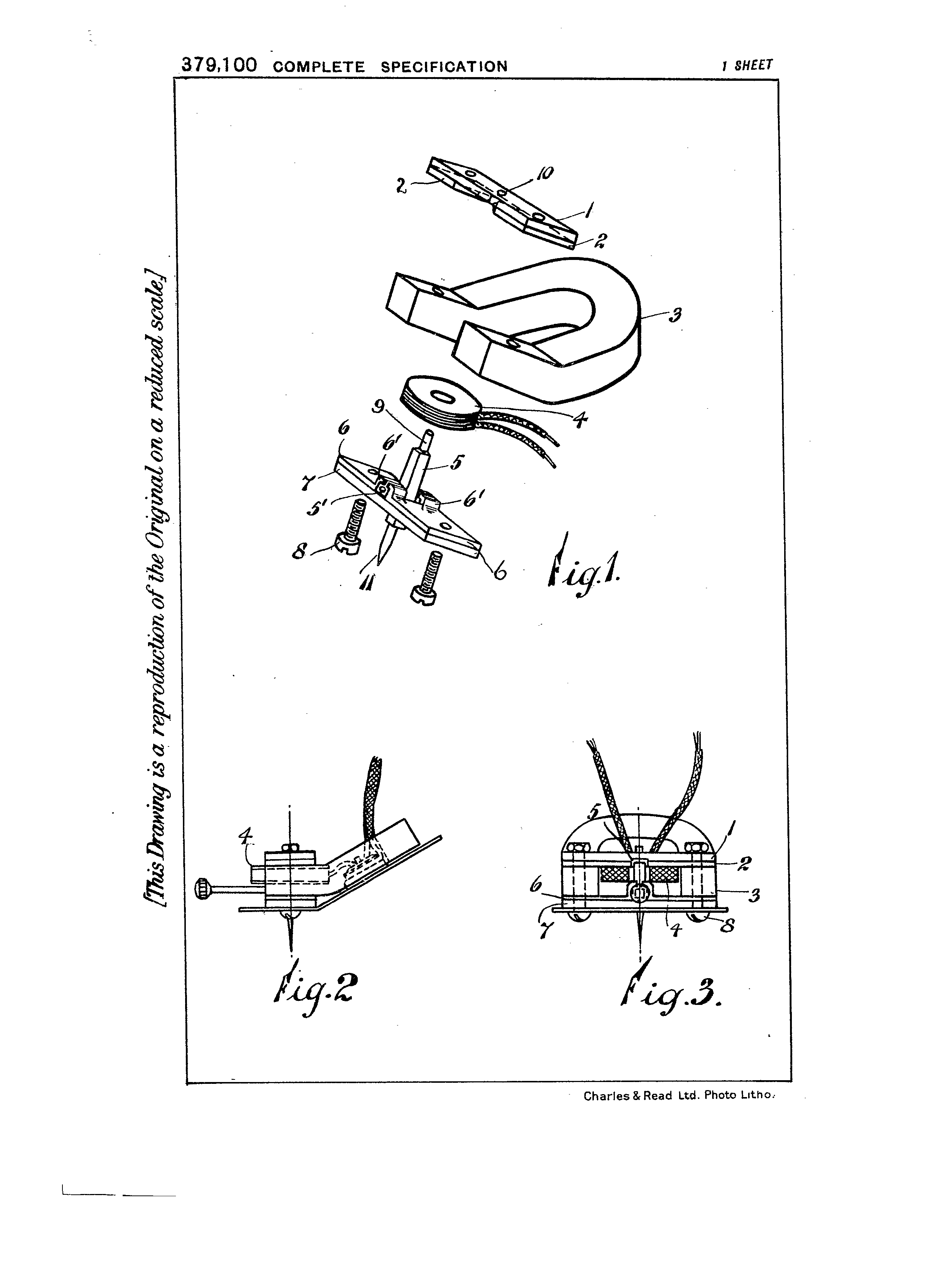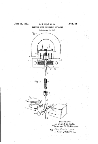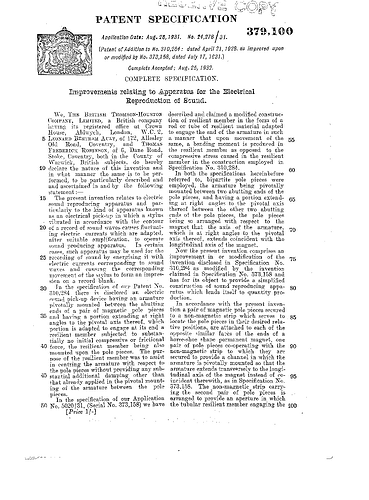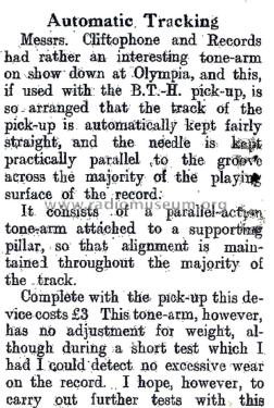 Ce nouveau type de tête de lecture à aiguille, légère, rotative pour le changement aisé de l’aiguille, équipait certains tourne-disques distribués par les marques britanniques " His Master’s Voice ", " Marconiphone " ou " Columbia " ( groupe " Electric and Musical Industries " " E.M.I. " ).