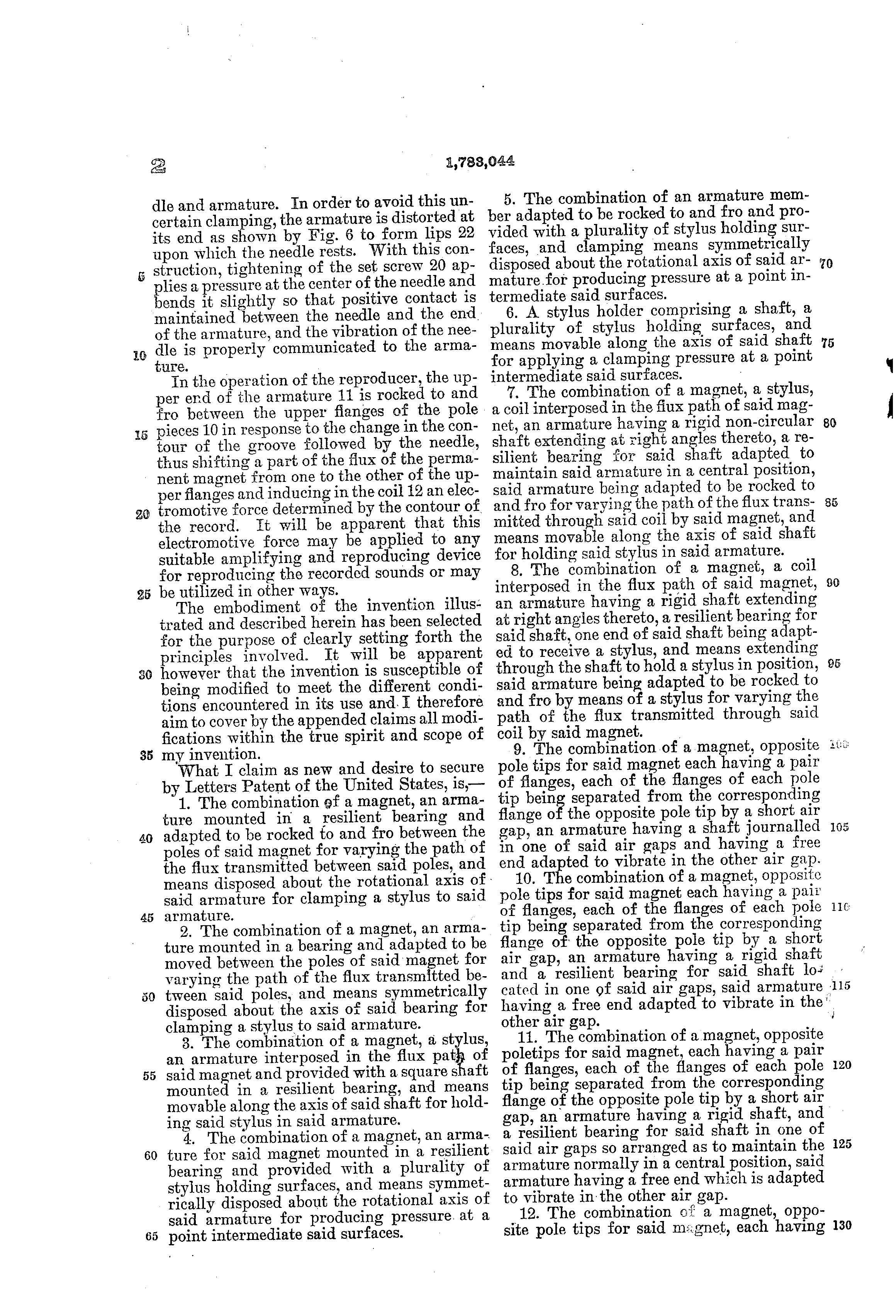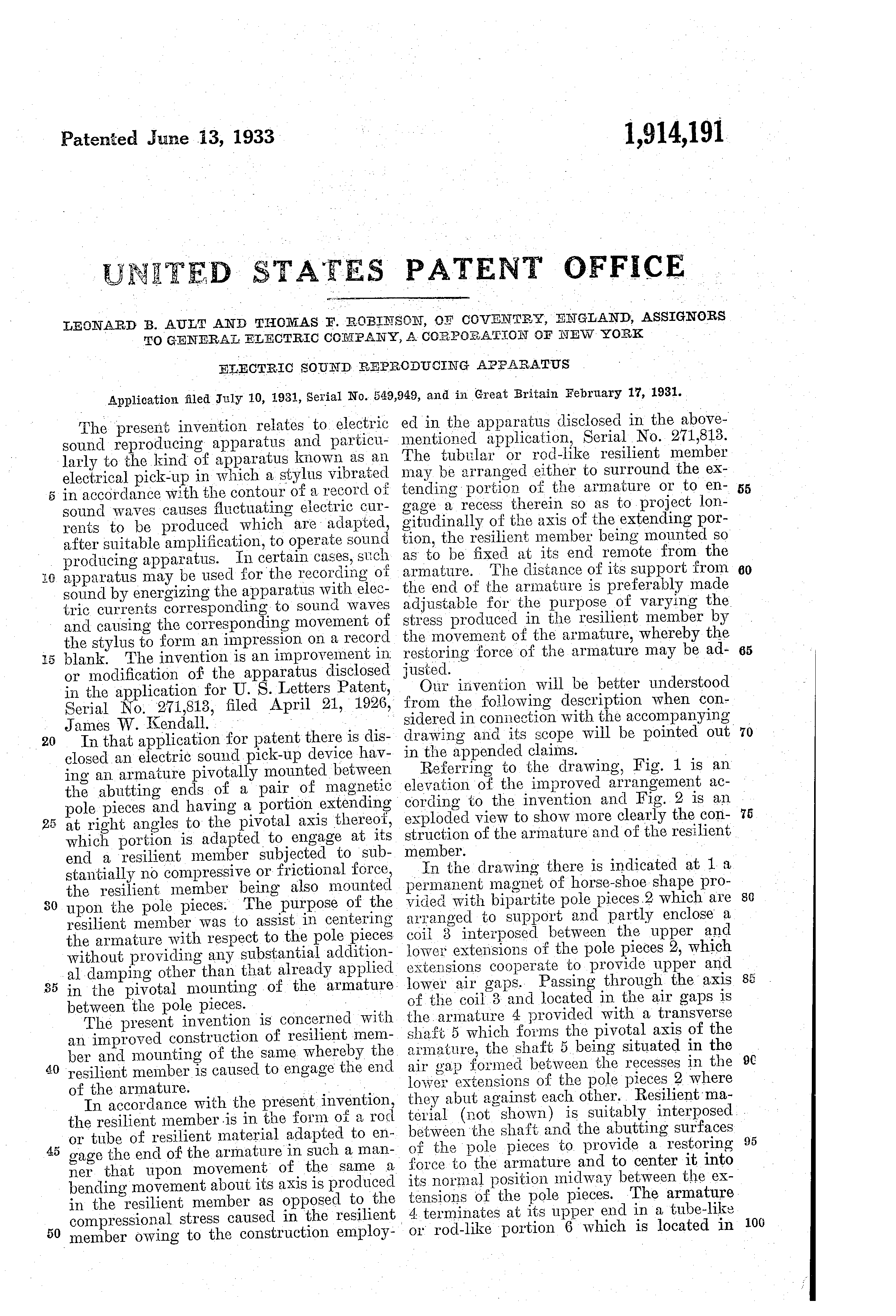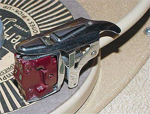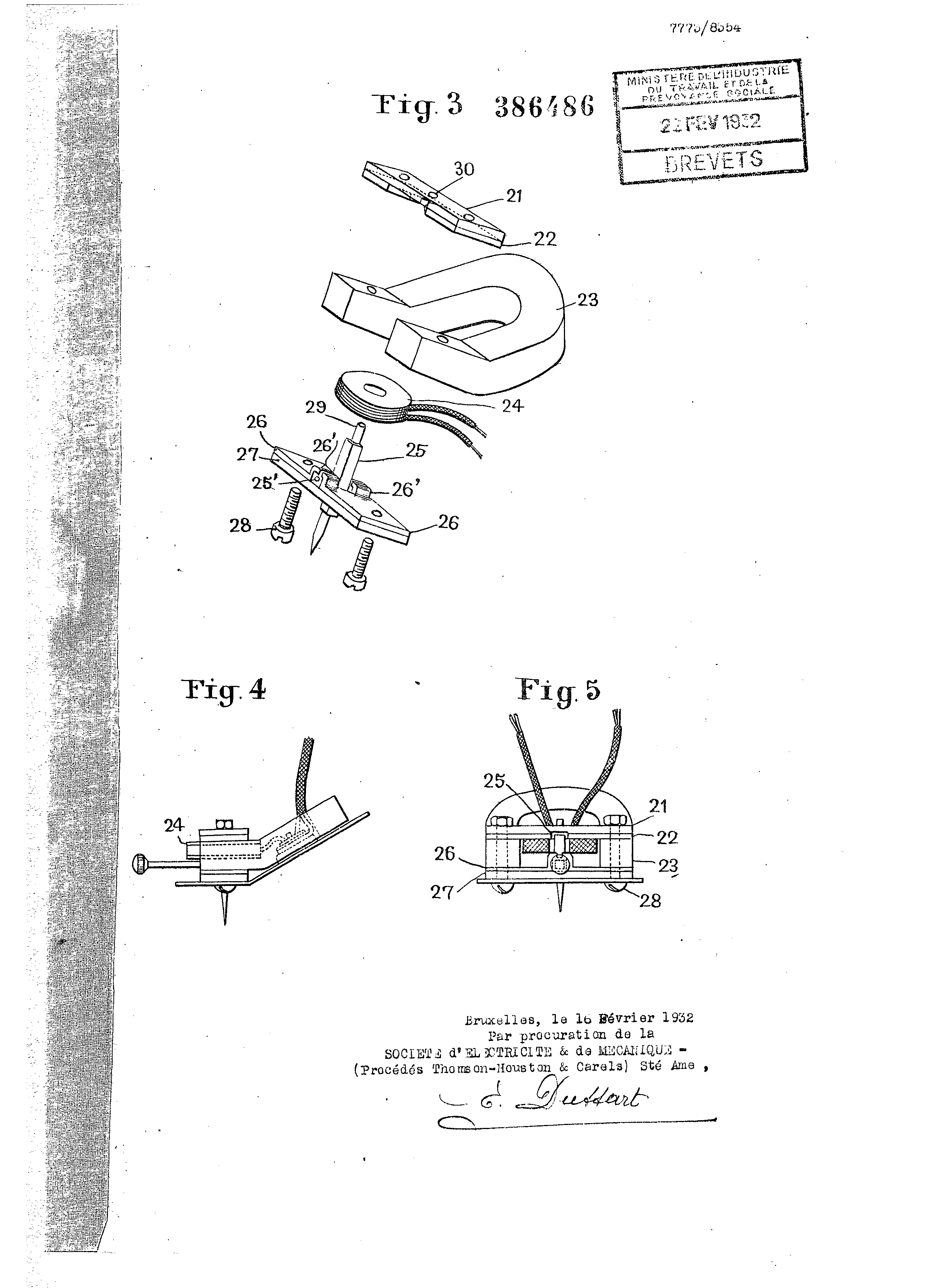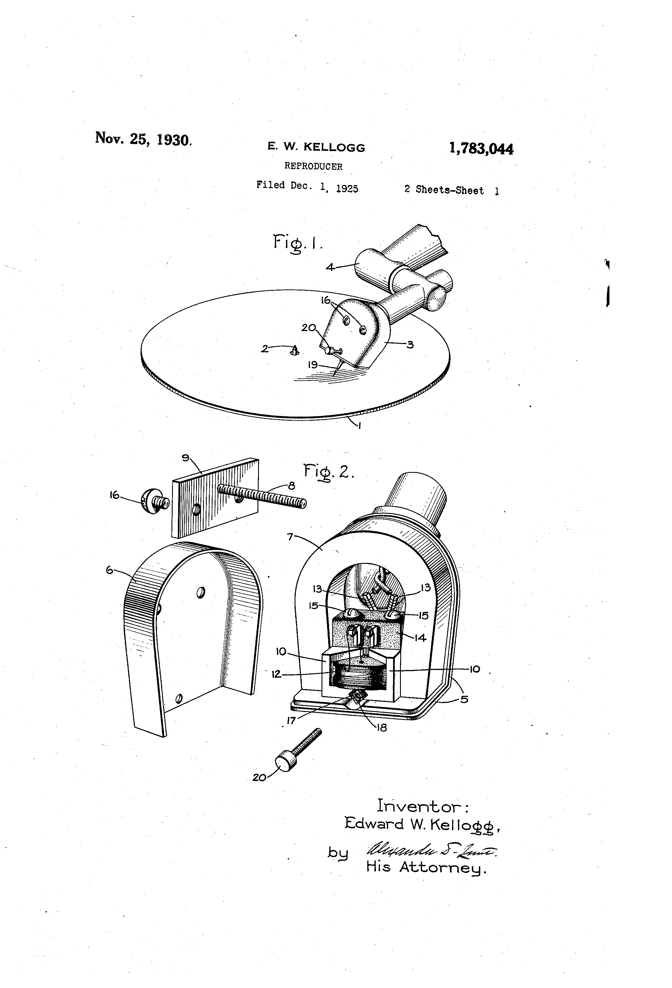 Ce nouveau type de tête de lecture à aiguille, légère, rotative pour le changement aisé de l’aiguille, équipait certains tourne-disques distribués par les marques britanniques " His Master’s Voice ", " Marconiphone " ou " Columbia " ( groupe " Electric and Musical Industries " " E.M.I. " ).