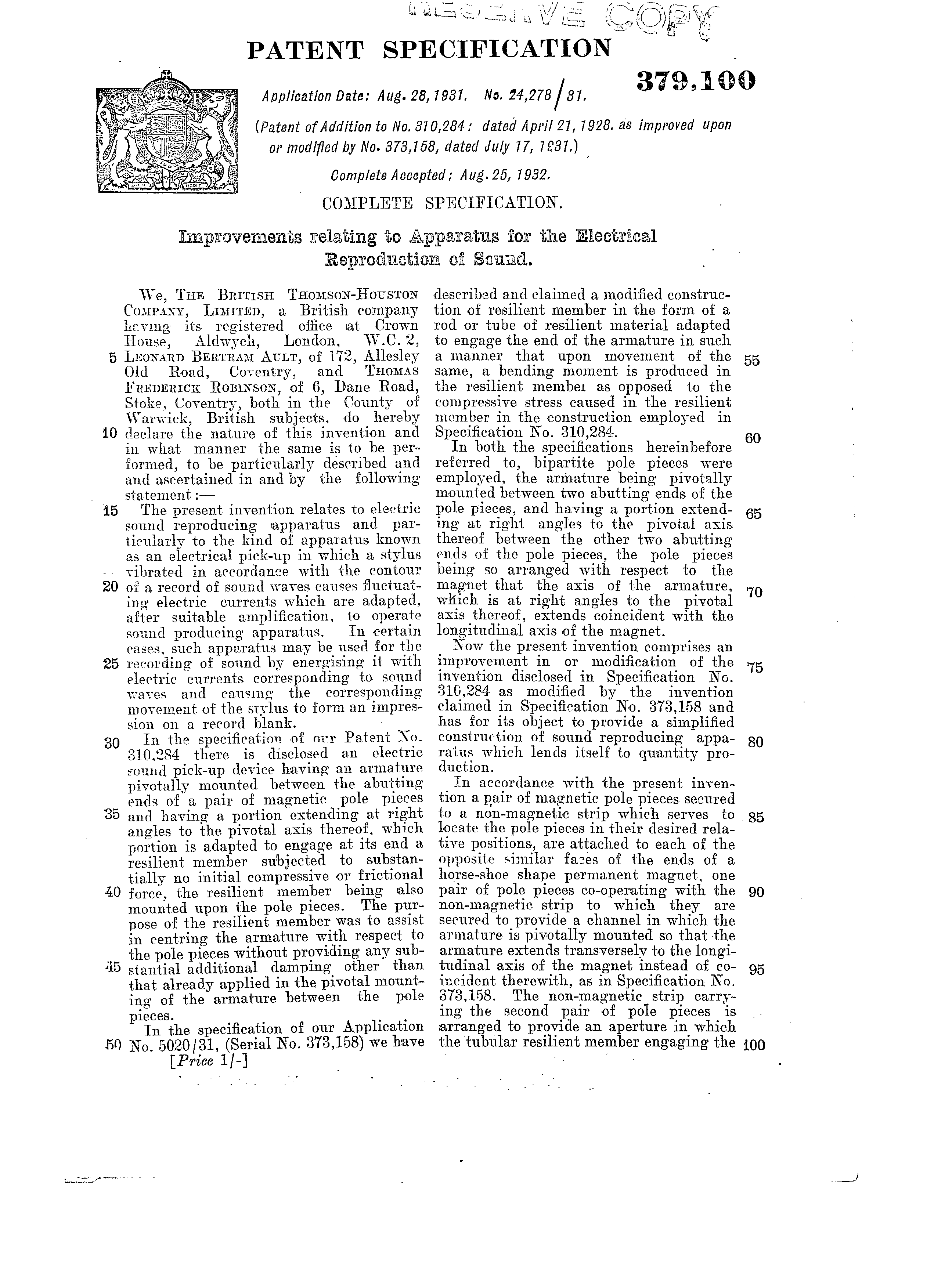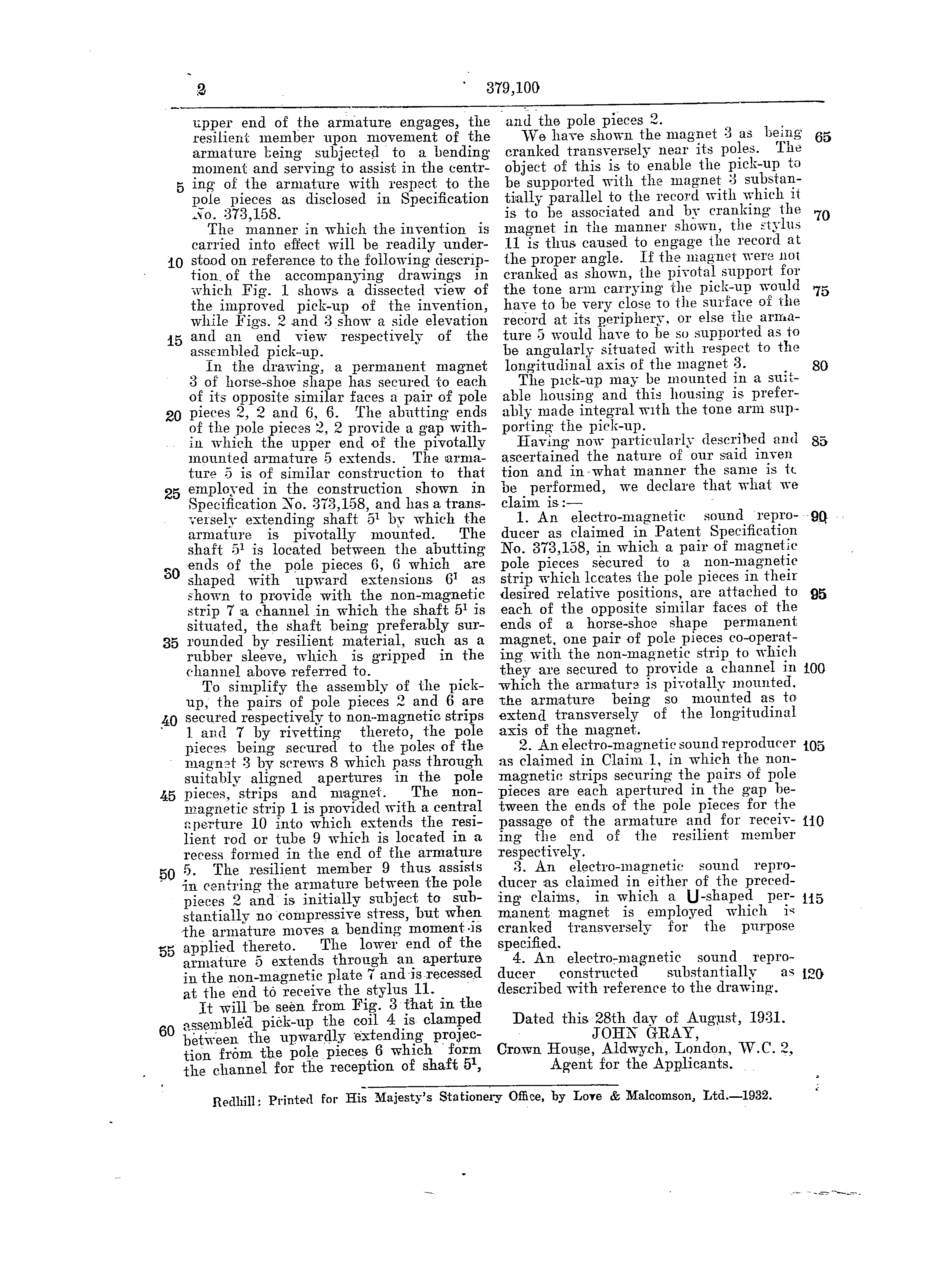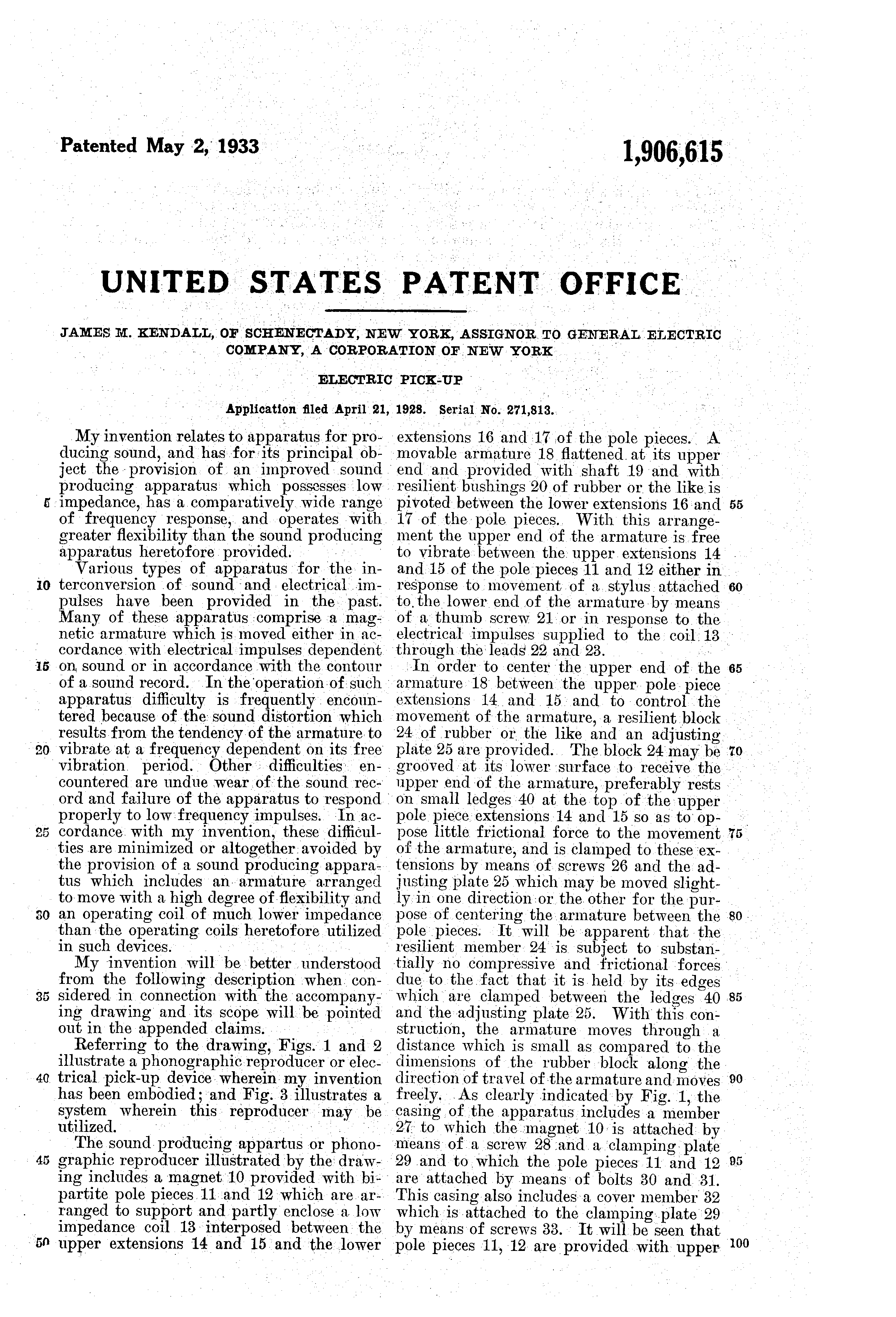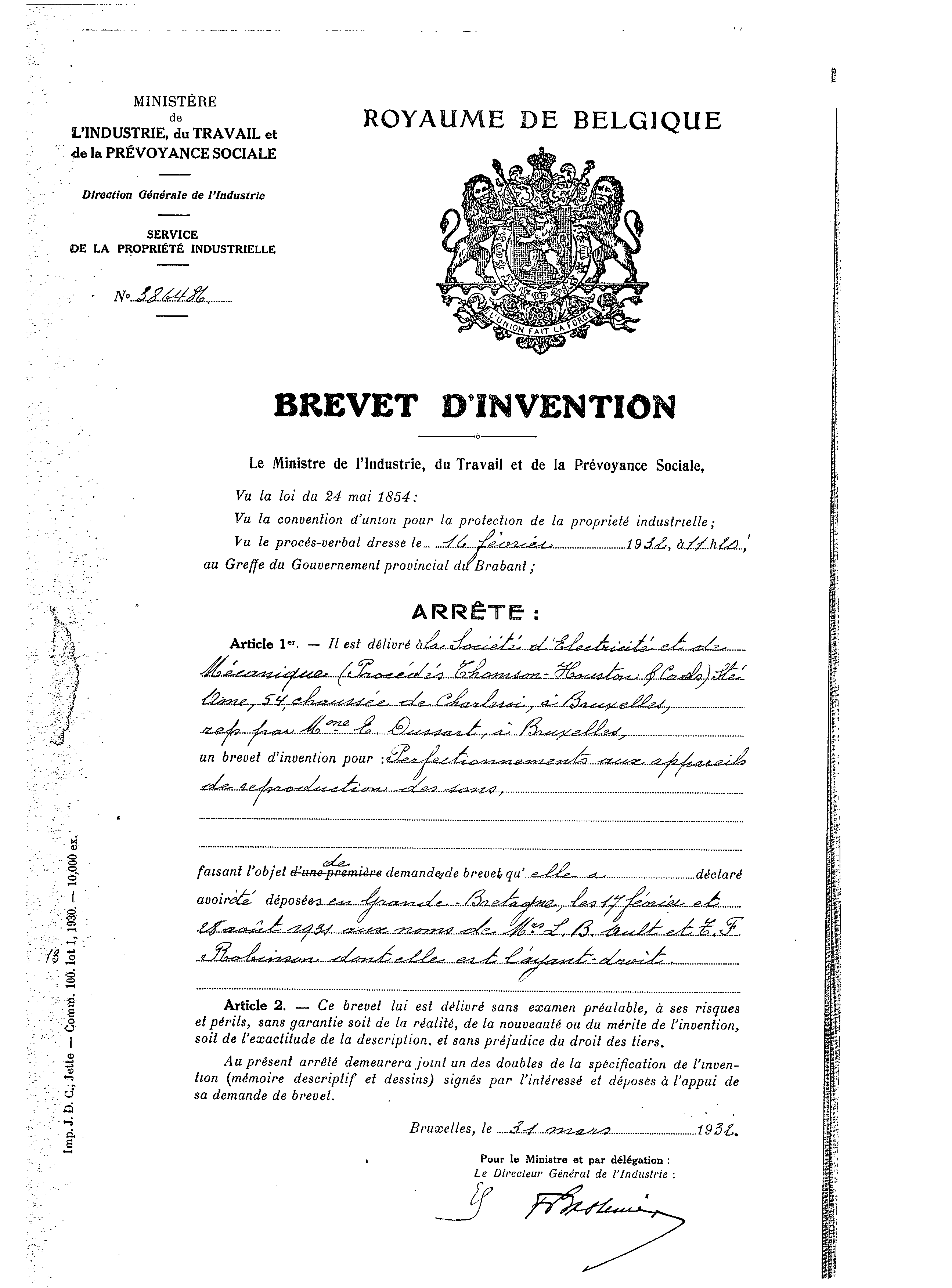 Ce nouveau type de tête de lecture à aiguille, légère, rotative pour le changement aisé de l’aiguille, équipait certains tourne-disques distribués par les marques britanniques " His Master’s Voice ", " Marconiphone " ou " Columbia " ( groupe " Electric and Musical Industries " " E.M.I. " ).