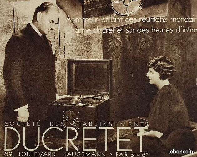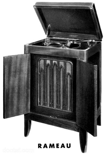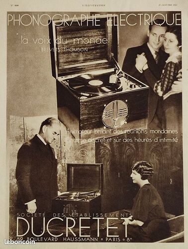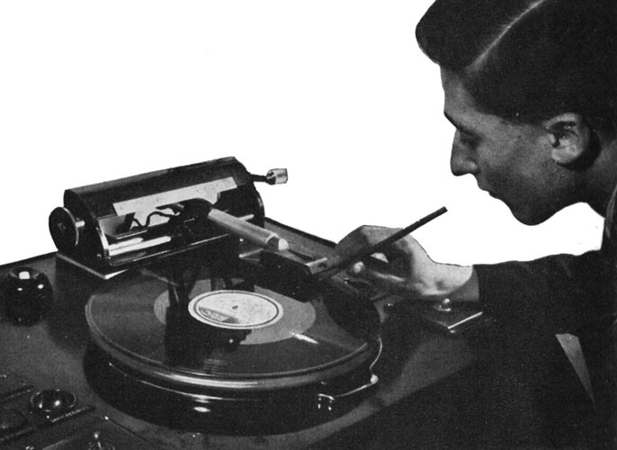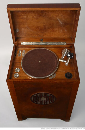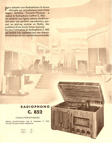 ou présentes sur certaines tables de gravure ( de disque ) de marque " Carobronze / DUAL / Poltz frères ", ainsi que sur la platine tourne-disques à trois vitesses Pierre Clément H3, munie du pick-up L4b ( à aiguille, et permettant de lire les nouveaux microsillons à l’aide d’une aiguille saphir adaptée ).