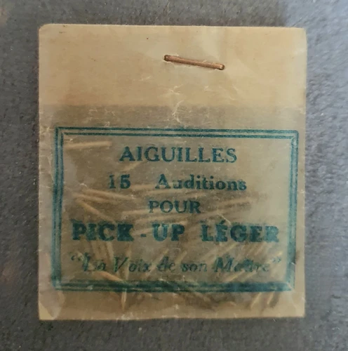Les aiguilles très fines et courtes, miniatures, destinées à ce type de tête de lecture " La Voix de son maître " ( E.M.I. Type 12 ), équipaient peut-être également les petites têtes de lecture à aiguille " Pierre Clément ", notamment utilisées après-guerre par les services de la Radiodiffusion-télévision française ( R.T.F. 1949 - 1964 ),