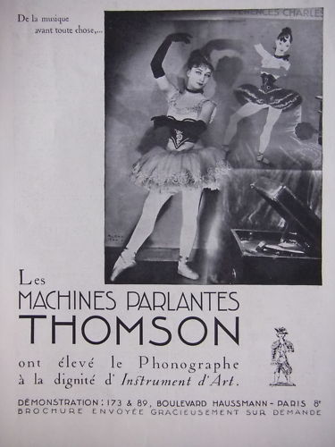Une publicité pour le meuble radio-électrophone " H.M.V. " Model 660, disposant d’un changeur automatique à huit disques " K3 ", équipé du nouveau pick-up léger H.M.V. ( His Master’s Voice ) " Hyper-sensitive ", un encart publicitaire paru le 28 septembre 1938, dans le magazine humoristique britannique " PUNCH or The London Charivari " :