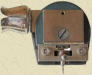 pas de trace de la moindre vis de fixation par contre le trou ou s’insère l’aiguille est découpé de telle façon qu’il présente une partie élastique serrant l’aiguille
