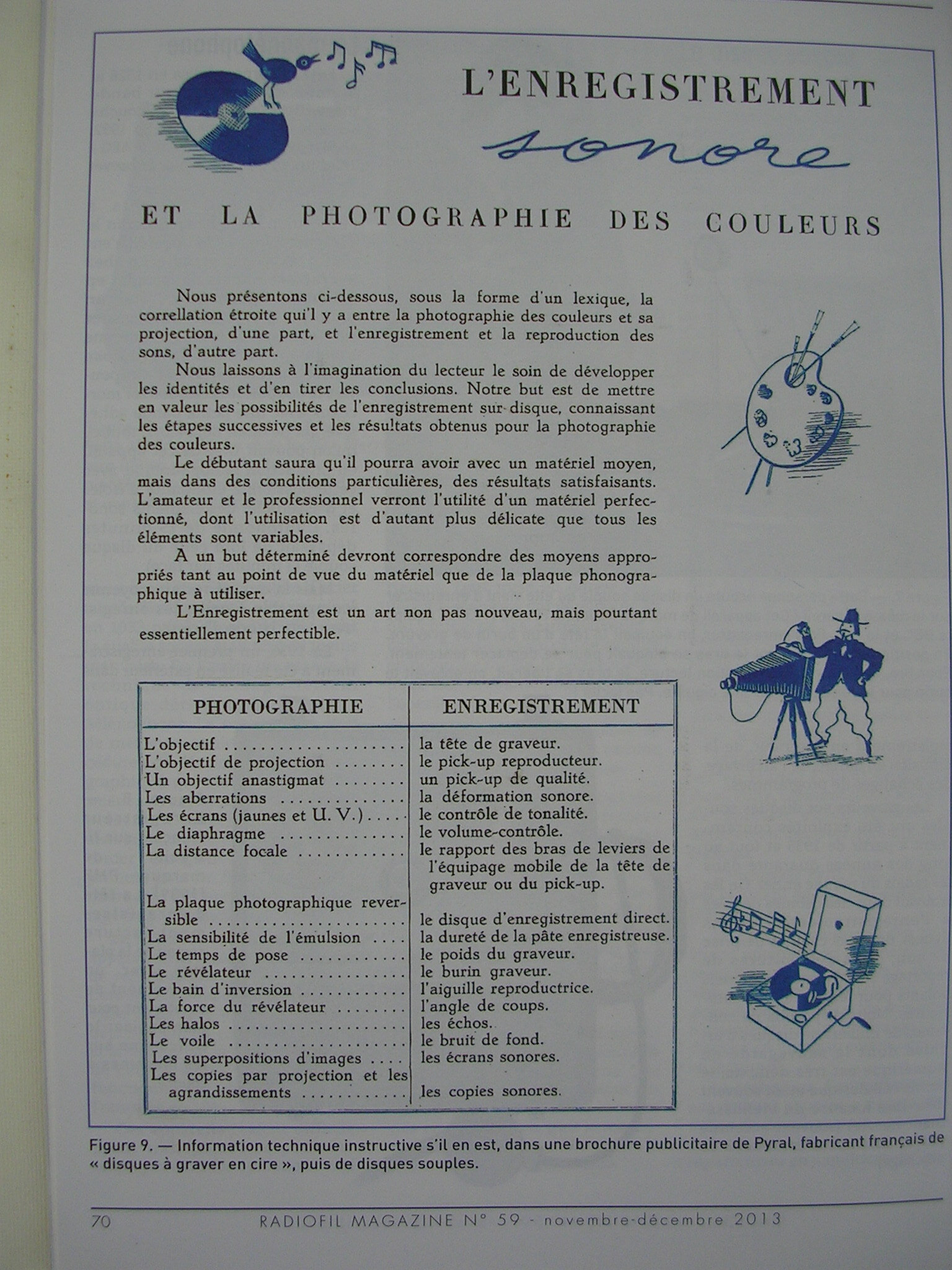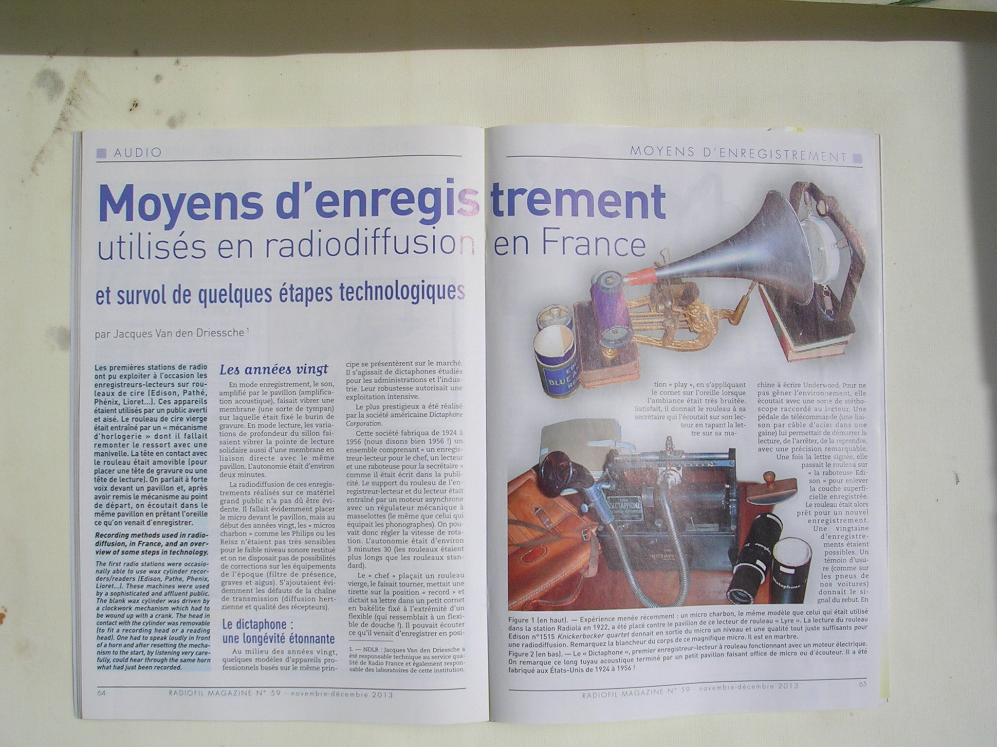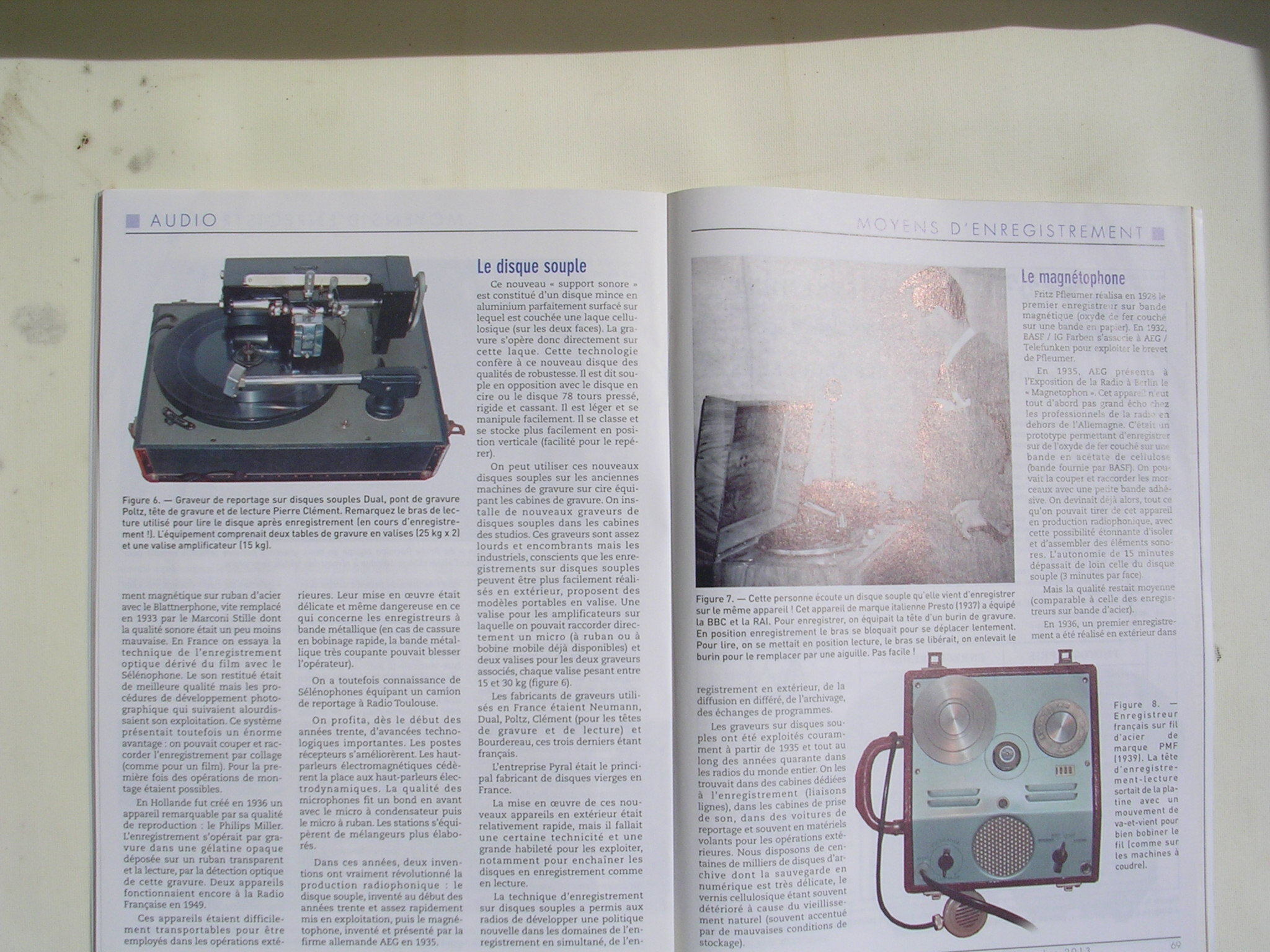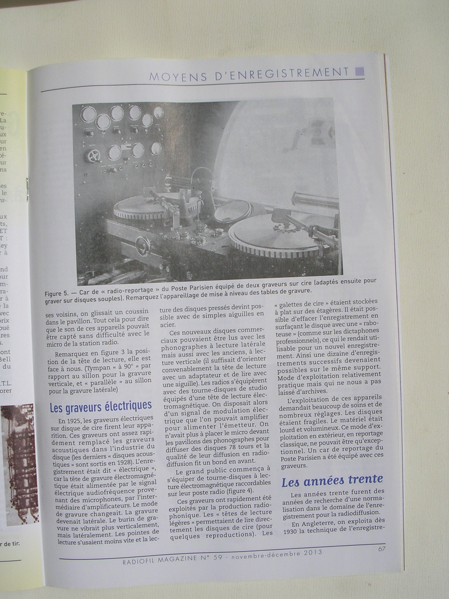 L’extrait de l’article " Moyens d’enregistrement utilisés en radiodiffusion en France et survol de quelques étapes technologiques " par Jacques Van den Driessche, paru dans la revue " radiofil magazine " n°59, " Numéro SPECIAL AUDIO " de novembre-décembre 2013, concernant notamment la gravure sur disque souple ( et lecture directe ) :