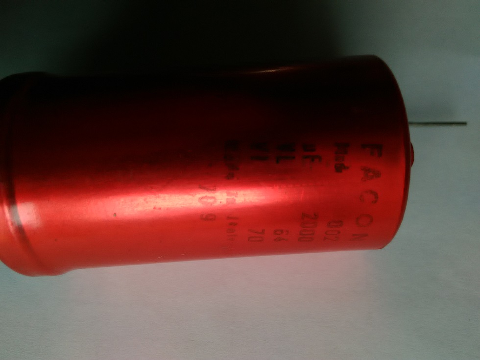 Puisque tu connais cet appareil, peux tu me dire si le point rouge sur ces capas Facon 2000µf d’origine est le « plus » qui est connecté d’une part sur la masse pour le filtrage et l’autre va sur la prise hp (point rouge) I , la borne fine ronde allant à la masse.