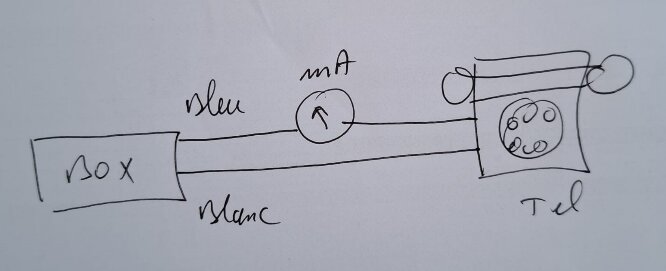 Autre question : si vous mettez un ampèremètre (continu) sur la ligne, entre box et téléphone, il dit quoi ?