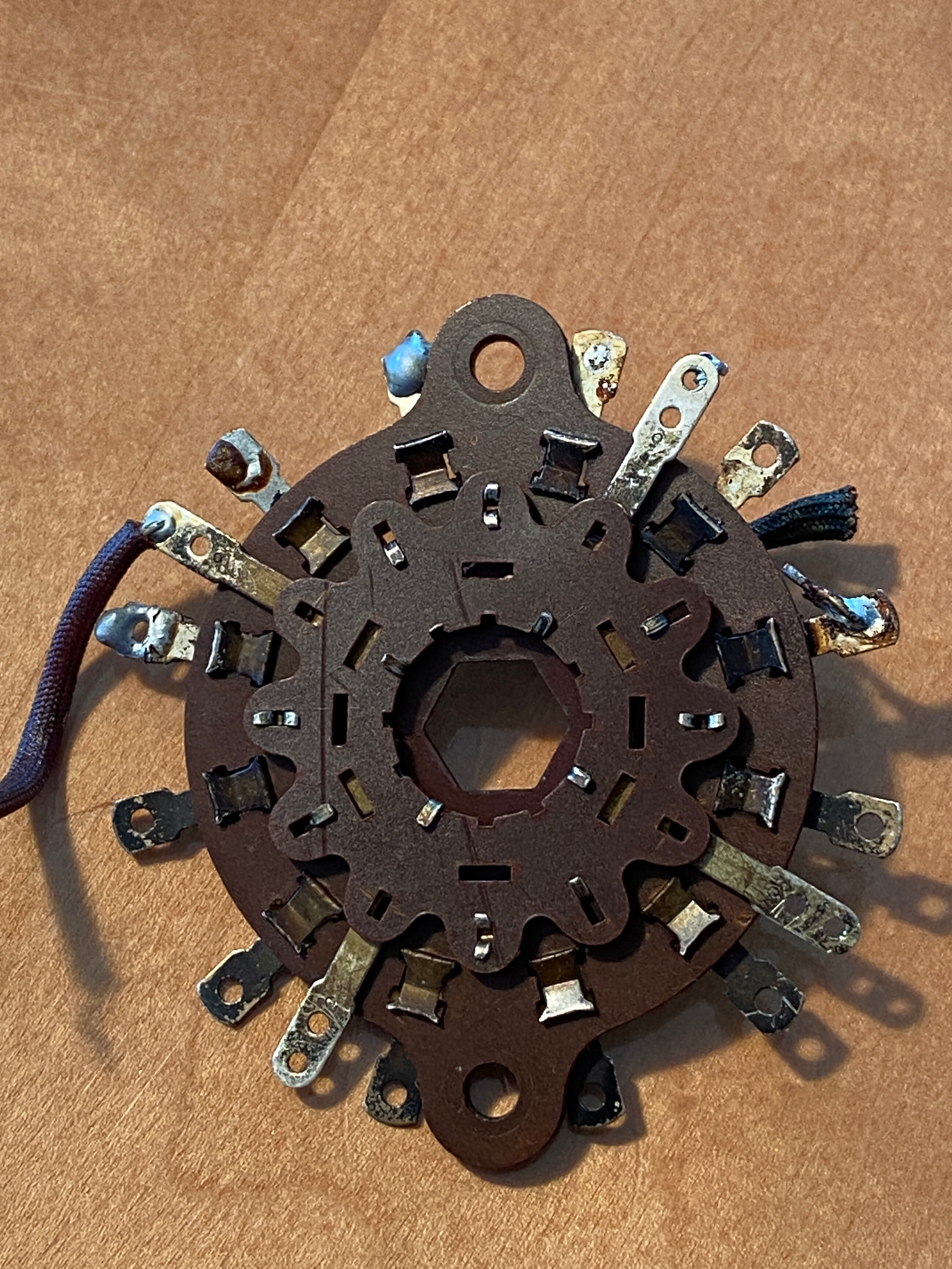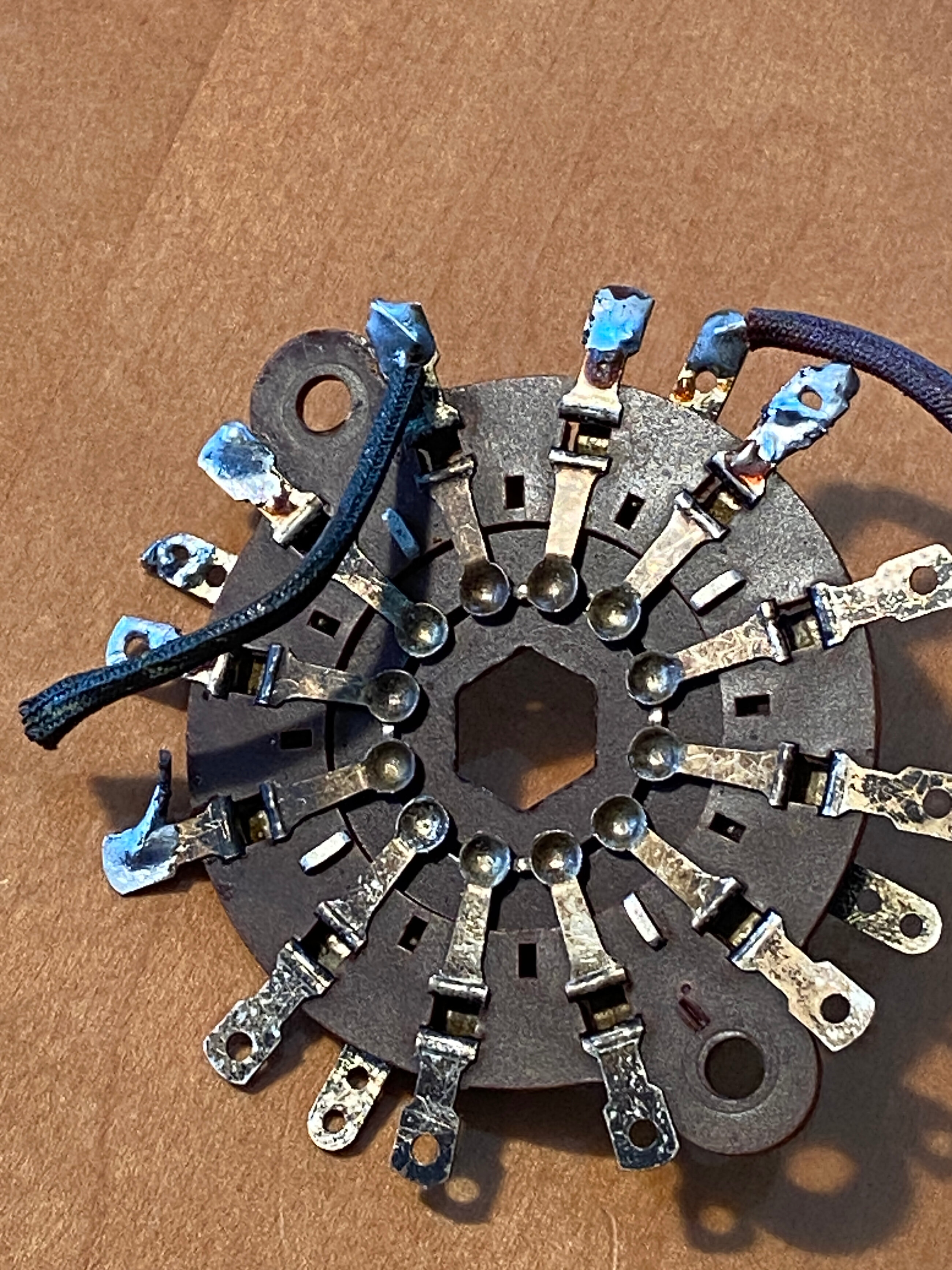 J’ai relevé le commutateur mais cela me donne un système d’accord complètement farfelu. Malgré avoir refait les mesures plusieurs fois je n’arrive pas à définir ce commutateur. C’est un douze positions plus 4. Seul 6 positions sont utilisées.