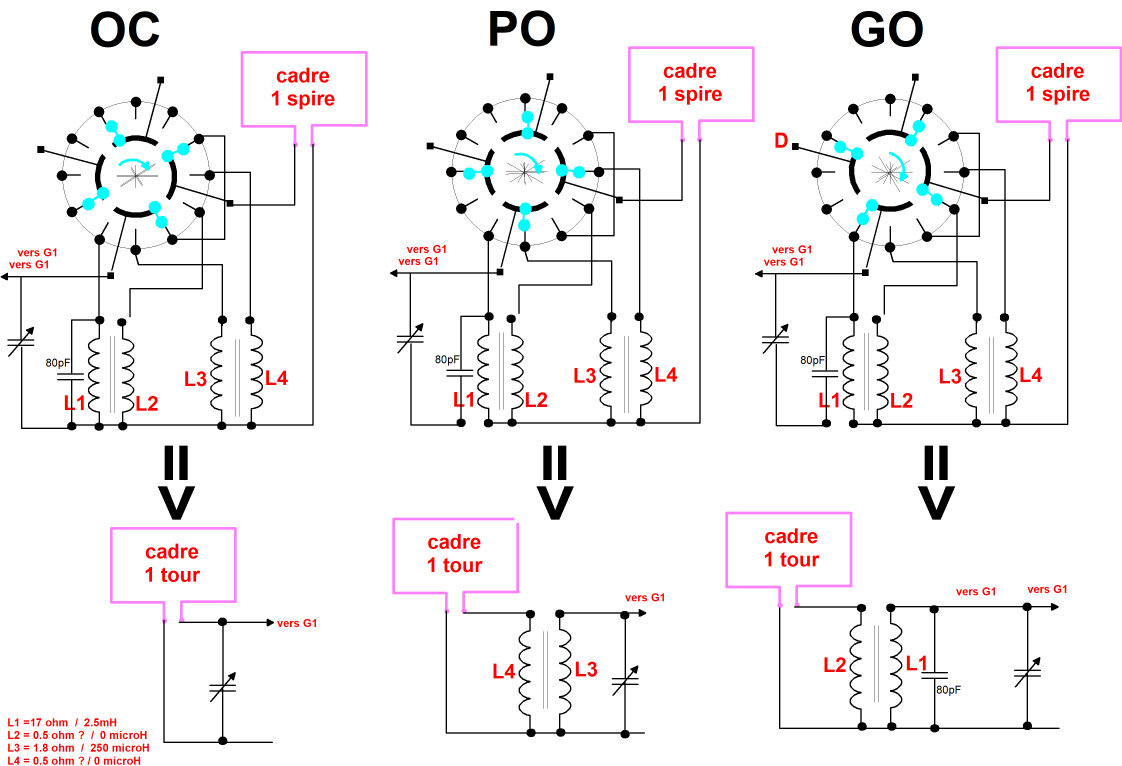 En principe ces cadres attaquent la G1 en direct en OC et via deux selfs pour les PO et GO. Mais ce n’est pas du tout cela que j’obtient.