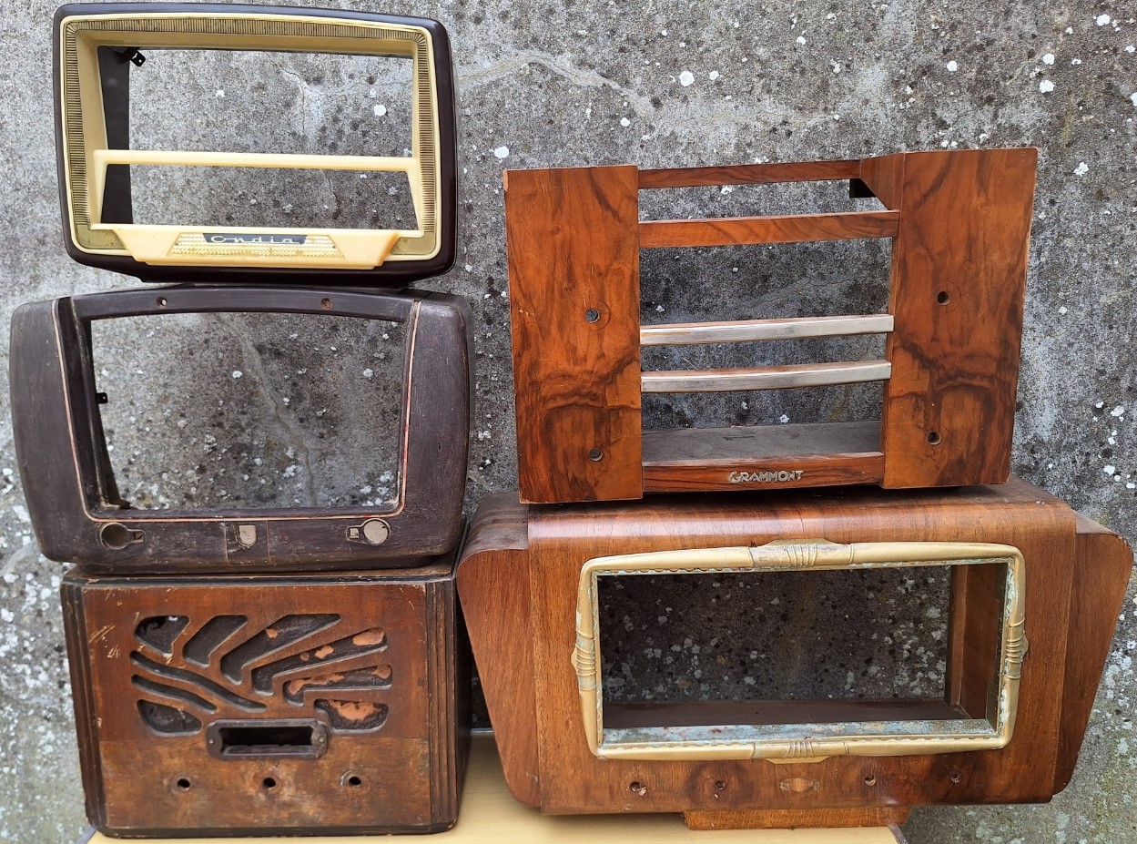 À gauche : 2 ébénisteries de poste batteries années 20.