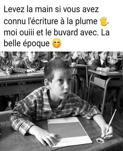 Moi aussi j’ai connu tout ça, même avec l’encrier sur une table de 2 enfants et avec ma main gauche, il y avait plus d’éclaboussures d’encre avec la plume qui accrochait le papier.
