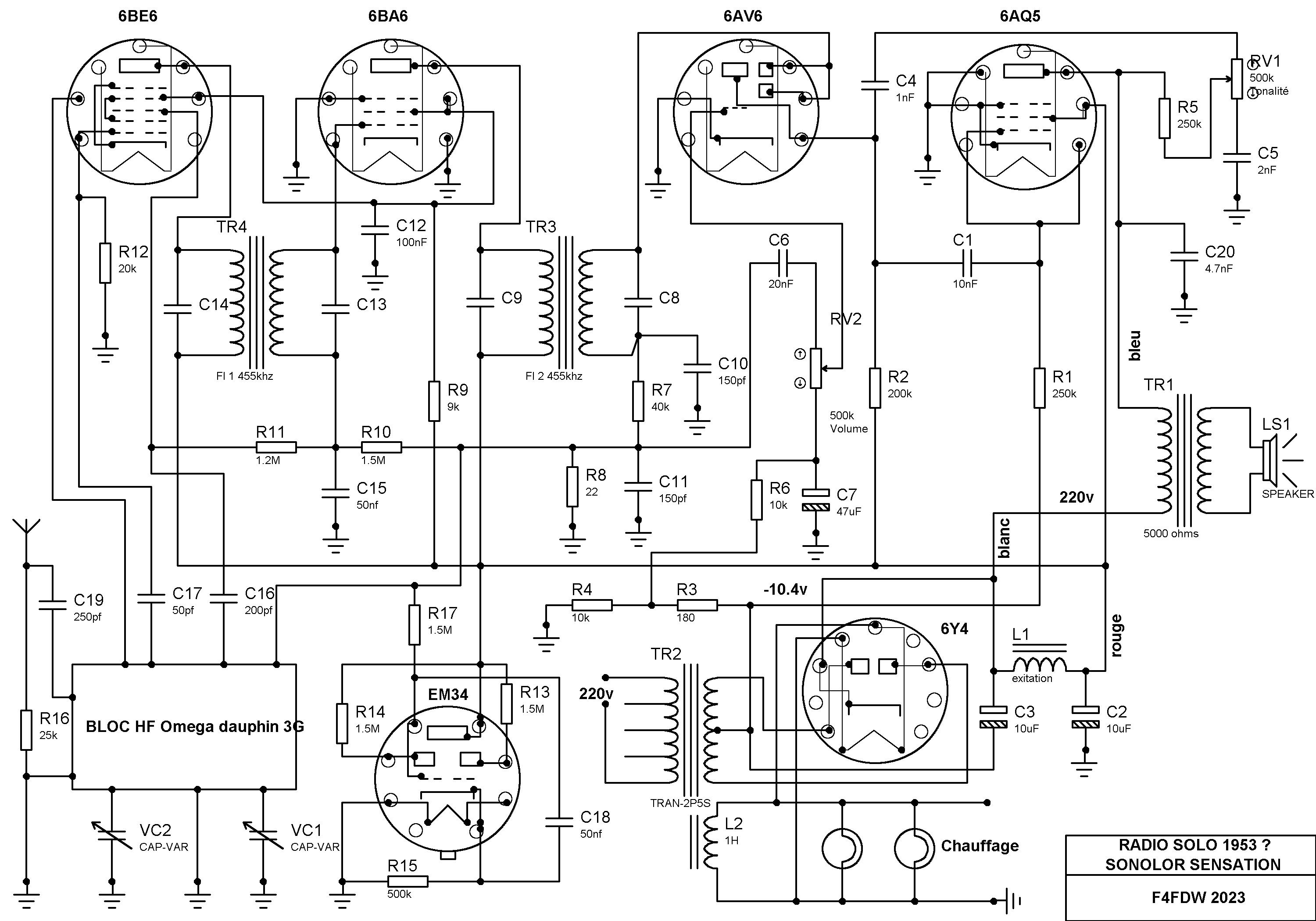 J’ai un radiosolo équivalent au Sonolor sensation avec EM34 mais c’est pratiquement pareil , schéma relevé .