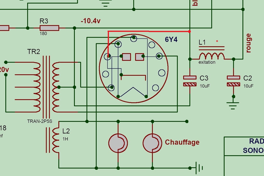 Bon c’est qu’un relevé, il peut y avoir des fautes , même les schémas d’origine ont en aussi , hi , condo à l’envers , R de mauvaise valeur , mais la cathode de 6BE6 est bien connectée au bloc , broche 2 !!!