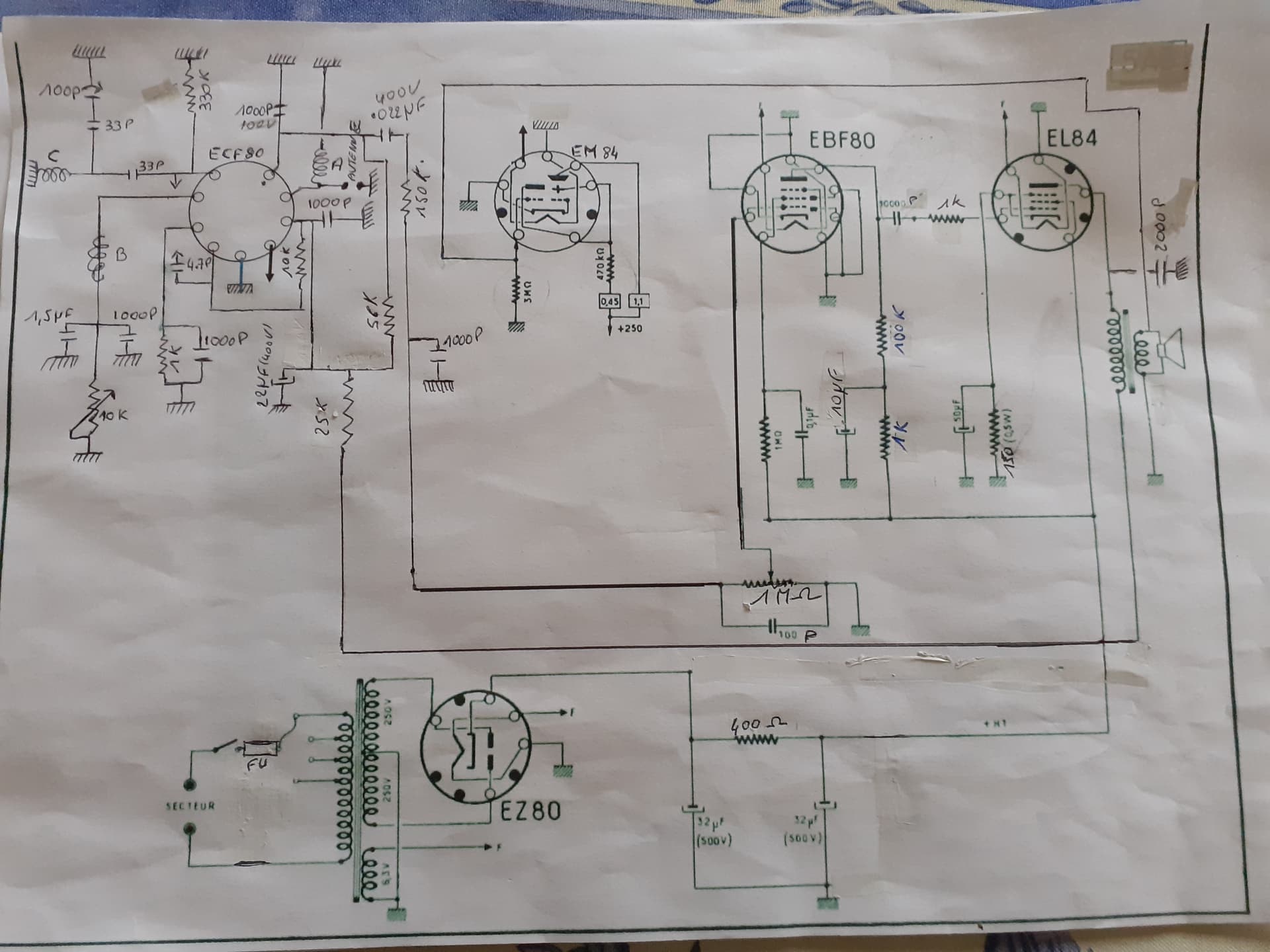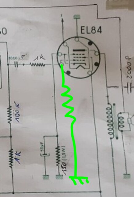 Regarde bien, la grille de commande G1 de l’EL 84, il lui manque une résistance (470k) vers la masse .