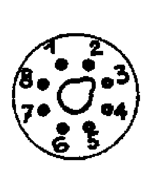 Pour la mesure avec le Centrad 751 il faudra donc utiliser des fils volants avec pinces crocodiles reliés à un bouchon mâle octal (ou un culot de récupération de lampe octal), avec cette correspondance entre les contacts du socle et les commutateurs :