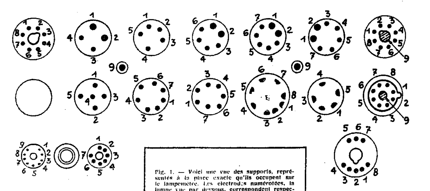 Par contre pour les supports loctal et rimlock on a conservé les broches 1 et 8 pour le filament connectées sur les commutateurs 1 et 2 comme c’est le cas des supports à broches et transcontinentaux plus anciens, américains, européens et allemands.