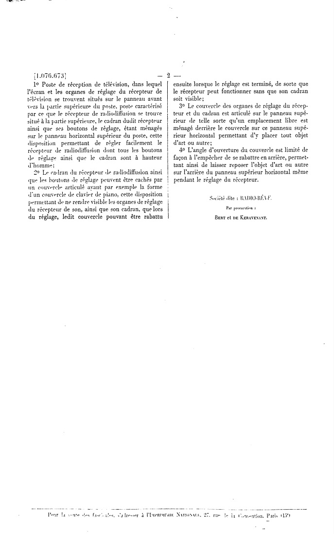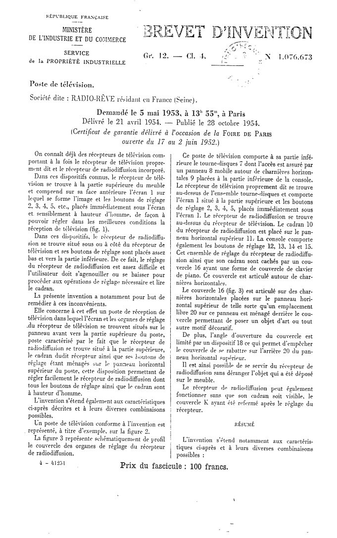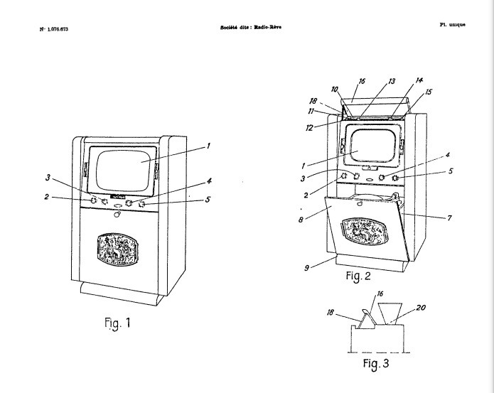 J’ai trouvé le dépôt de brevet qui suit (1953)sur un ensemble Téléviseur-Radio-Phono.