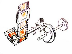 Pendant la durée d’une image , la croix tourne ( 1 tour complet toute les deux images ) et une de ses 4 branches vient occulter l’image une fraction de seconde